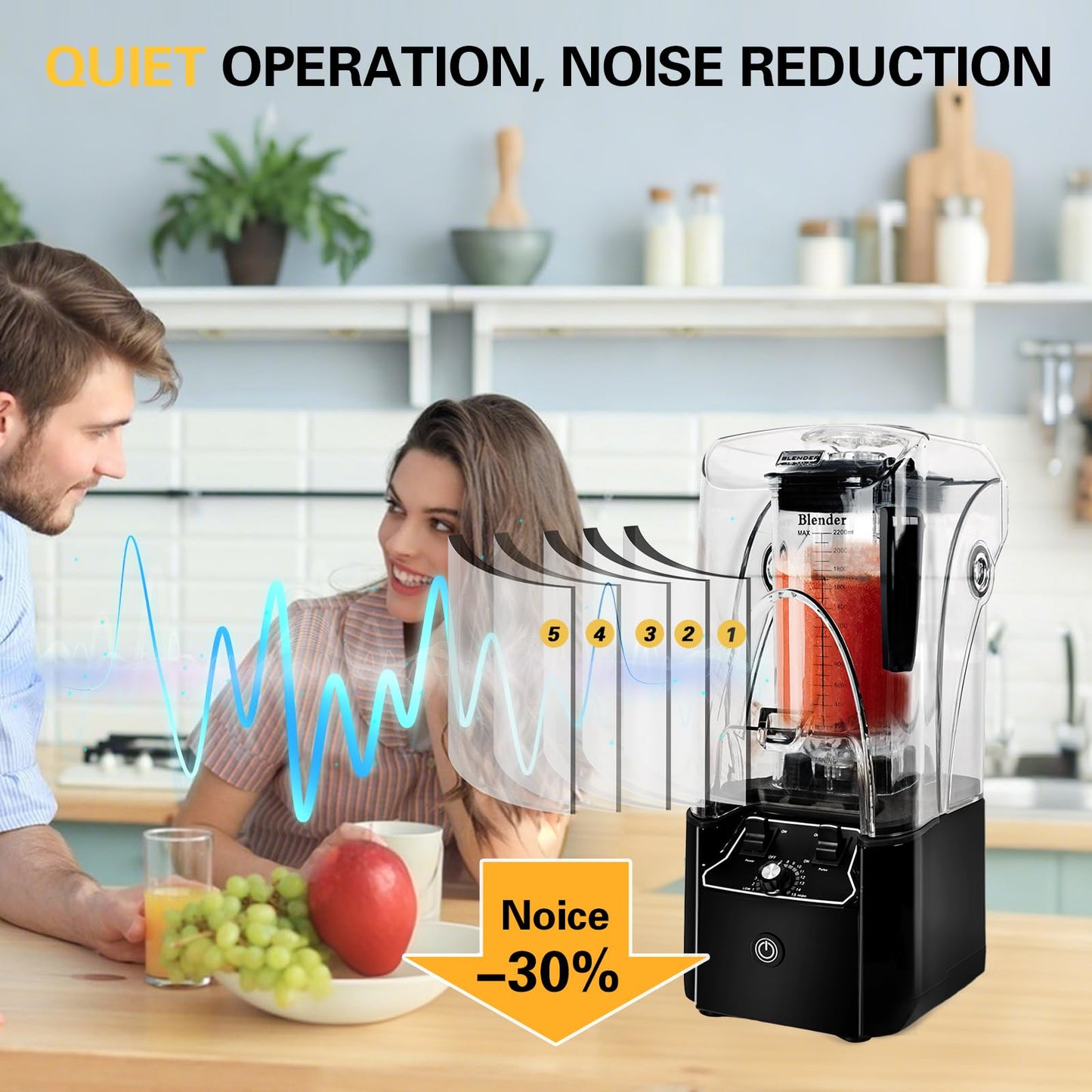 FULIYE Commercial Blender with Soundproof Shield,Quiet Commercial Blender for Smoothies 2200W With Cover, Professional Blender with 80 oz Jar for Restaurant, Smoothie, Ice Crushing9.5"D x 9"W x 19.7"H