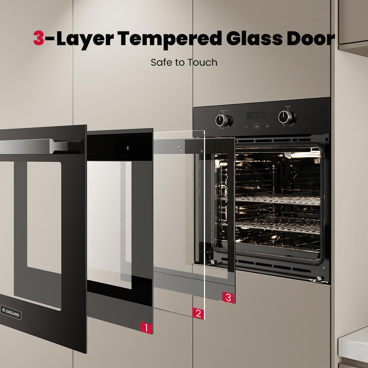 - 【3-Layer Tempered Glass Door】 The oven door is made of upgraded 3-layer tempered glass, and the handle is made of aluminum alloy. This design can effectively insulate high temperature to ensure safety. The door is removable for easily maintenance.