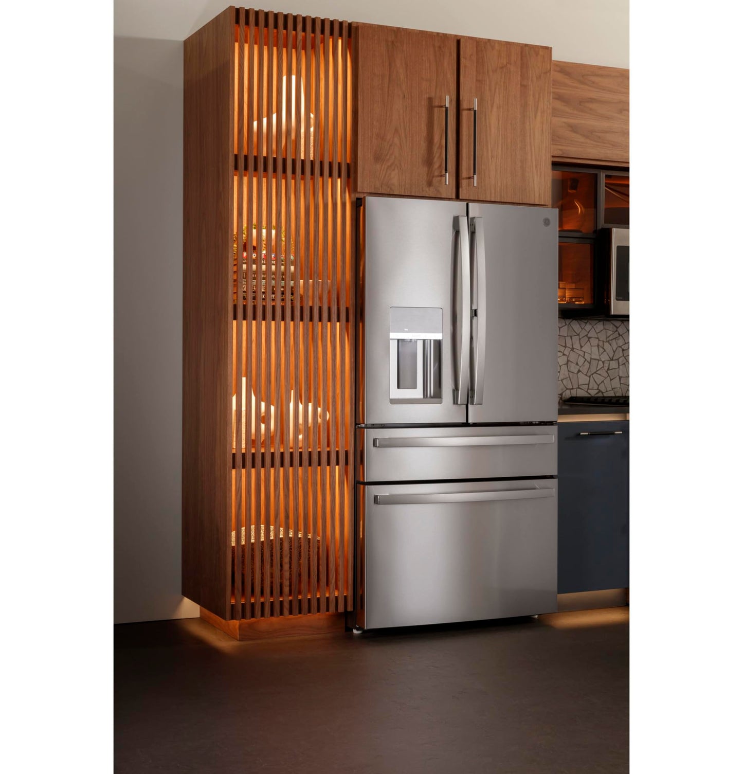 Details: This 36 4-door french door refrigerator by GE Profile has 27.6 cu. ft. total capacity and features LED light tower. built-in Wi-Fi. TwinChill evaporators. and is Energy Star Certified.