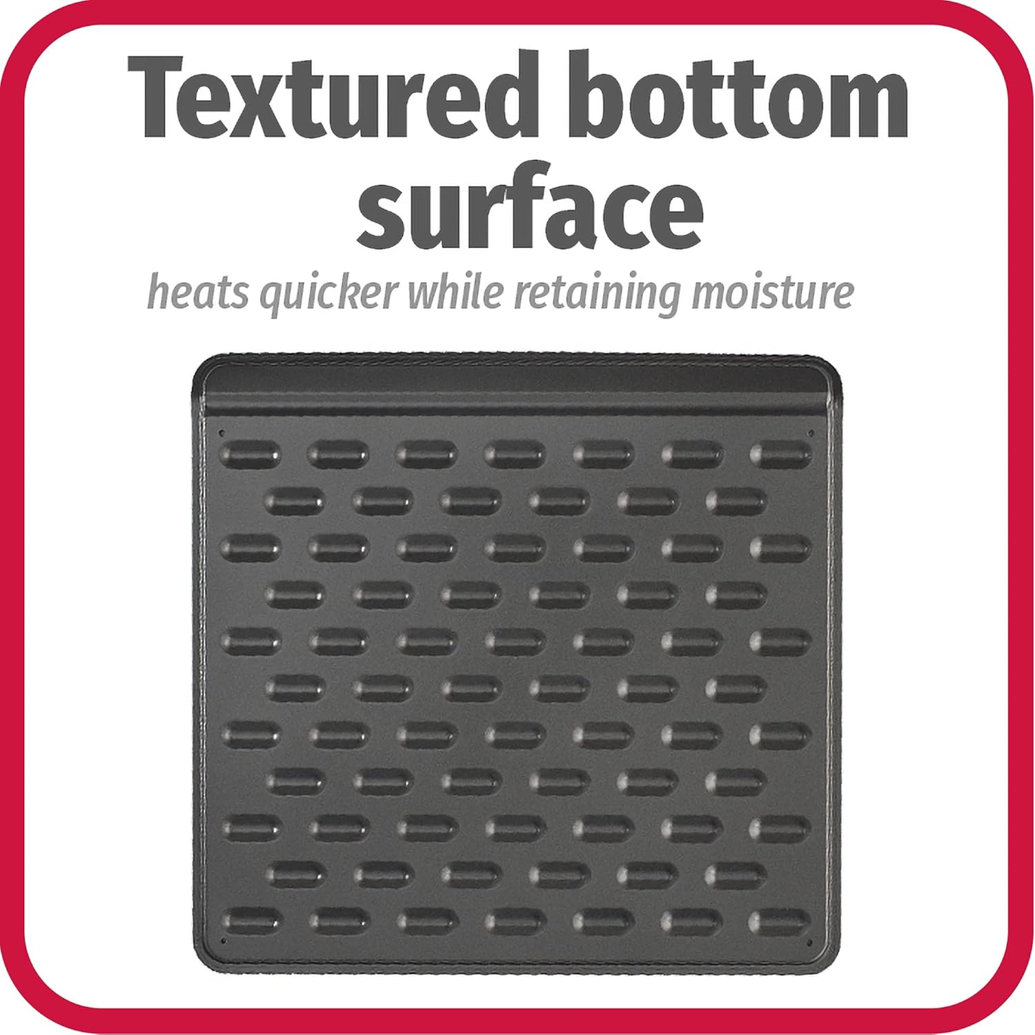 - TEXTURED BOTTOM: These baking pans feature a textured bottom that heats up quickly while retaining moisture, preventing over-heating on the top and ensuring the perfect bake every time.