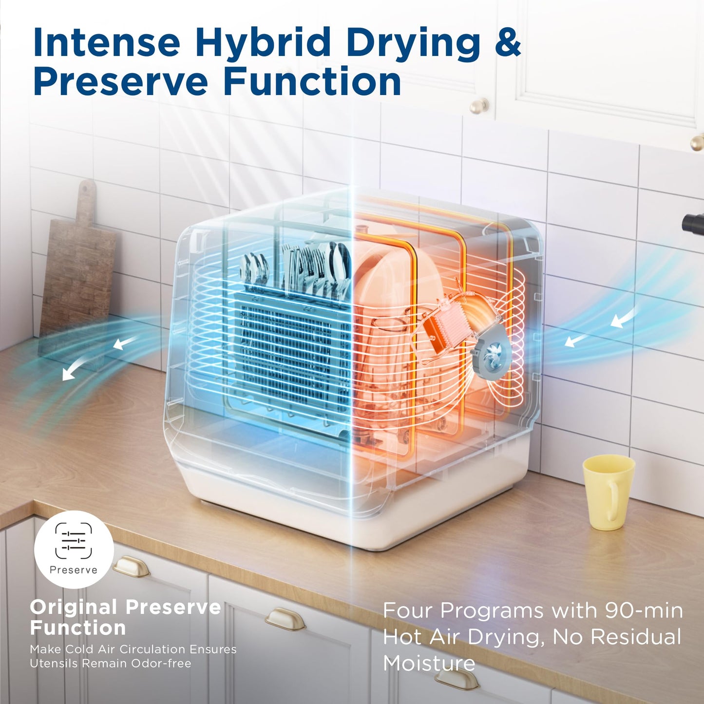 • Original Preserve Function: This countertop mini dishwasher runs a preservation function after washing, with fan ventilation every 3 hours for 18 minutes within 24 hours, ensuring utensils remain odor-free and fresh