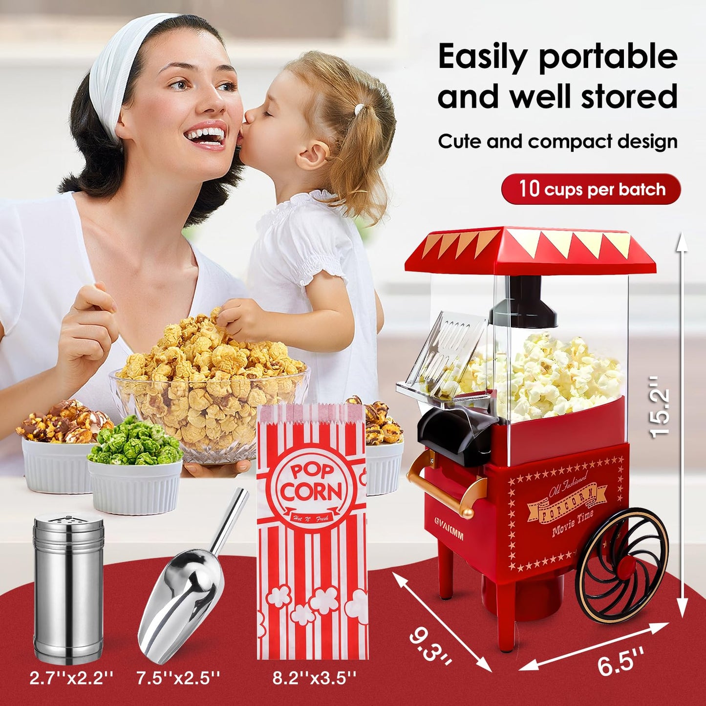 GVAKMM Popcorn Machine, Christmas Hot Air Popcorn Maker Kit Gift Box, Portable Home Popcorn Popper Machine, 10-Cup,Oil-Free,Retro Style,Compact and Cute