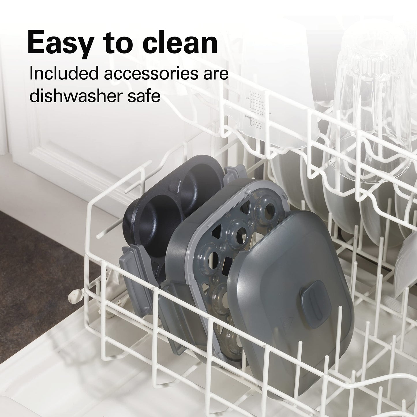 Hamilton Beach 6-in-1 Electric Egg Cooker for Hard Boiled Eggs, Sous Vide Style Egg Bite Maker and Poacher, 5.25” Non-Stick Skillet for Omelets, Scrambling & Frying, Grey (25510)