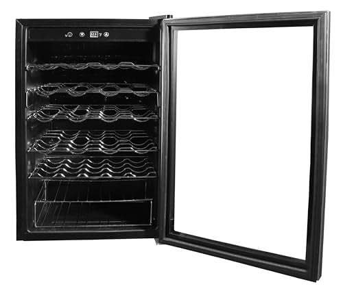 Details: This 43-bottle wine cooler is absolutely perfect. With a brand new stylish finish this wine chiller is the perfect accessory to any room. We have outfitted this model with clean Wire shelves along with an easy to read blue led temperature display with touch controls! it looks great and keeps your favorite bottles at the right temperature, all the time! Heat pipe technology which is 10x more efficient than standard wine chillers. This allows our system to use much less energy with ultra quiet operation. Know your bottle temperatures by viewing the blue led touch control temperature display.