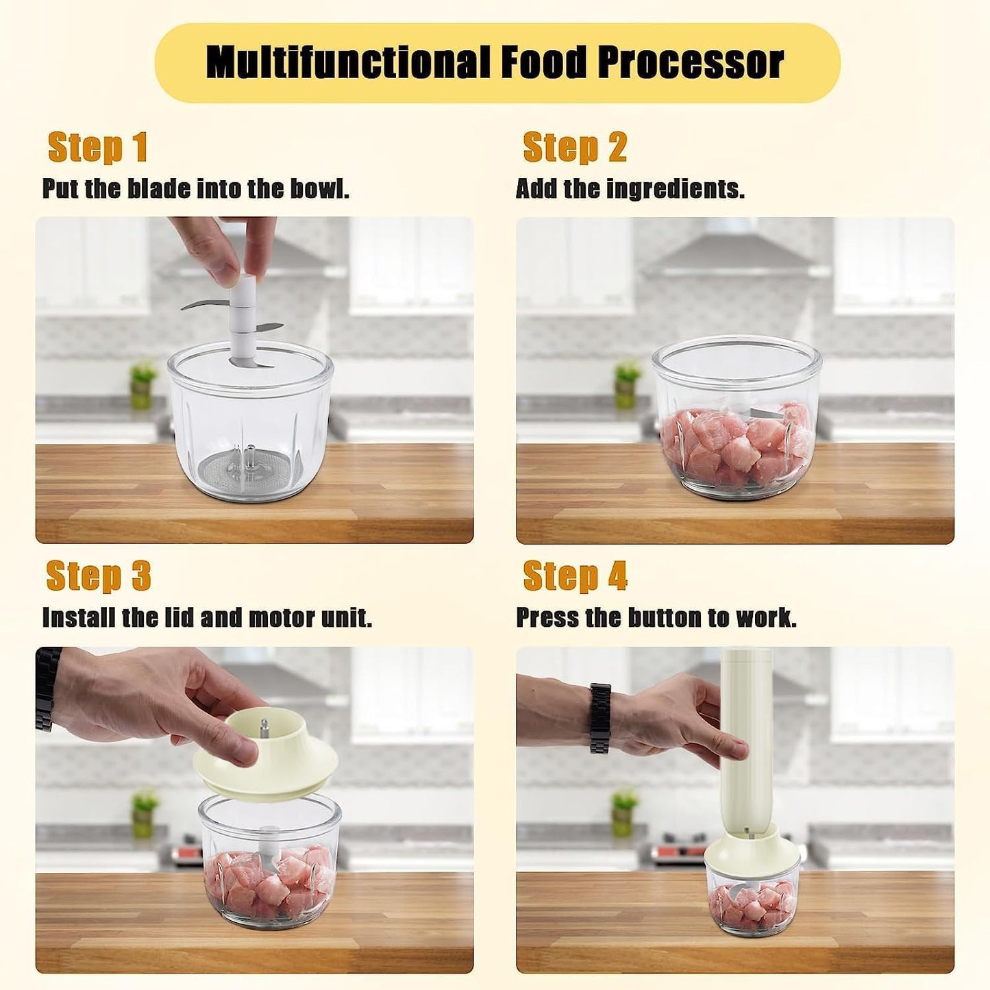 - Quick & Easy Cleanup: Cleaning is a snap! Simply detach the mixing cup, whisk, or blades for rinsing. The stainless steel attachments and glass cup are dishwasher-safe, while the motor unit can be wiped down with a towel or sponge. Please note: the electric base should never be submerged in water. Enjoy hassle-free maintenance with this essential food processor for your kitchen.