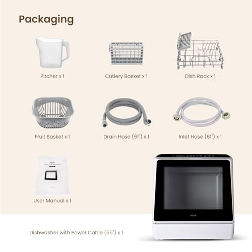 - 【NO INSTALLATION NEEDED】 HAVA Countertop Dishwasher supports 2 water supply modes. By simply adding water to the built-in 5L water tank, you can put the dishwasher in any suitable place without connecting to tap water. Or connect the water inlet to a faucet using the included hose. A compact design makes it perfect for small-sized houses, apartments, dorms, boats, and campers/RVs.
