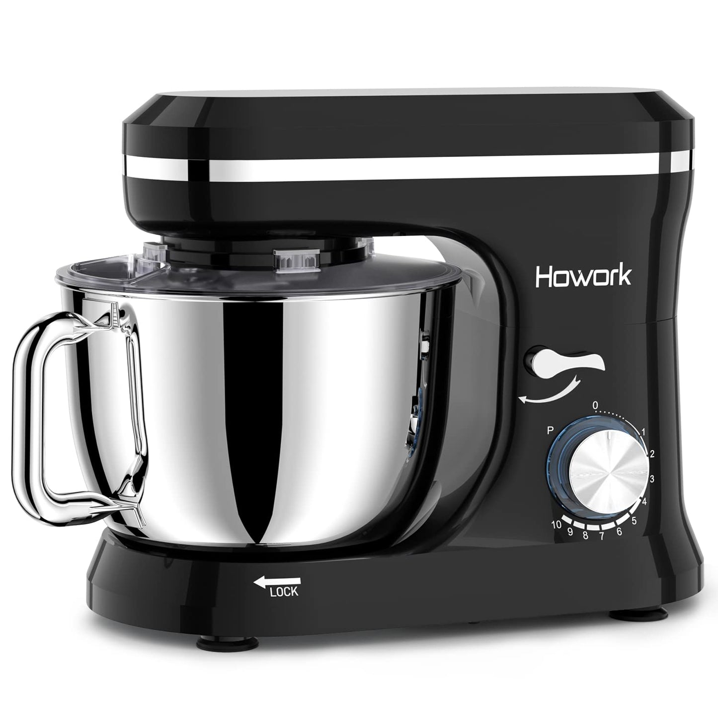 HOWORK Electric Stand Mixer,10+p Speeds With 6.5QT Stainless Steel Bowl,Dough Hook, Wire Whip & Beater,for Most Home Cooks,Black