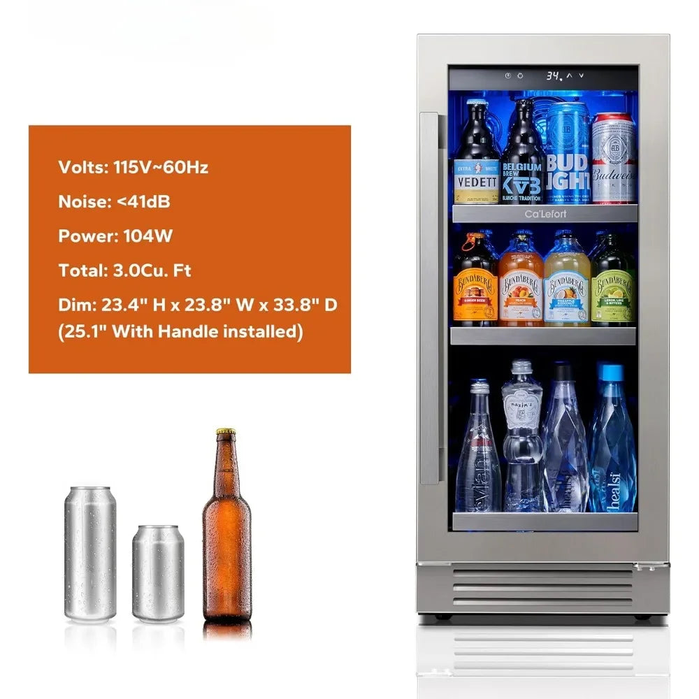 【High Capacity Storage Planable Space】Ca'Lefort 3.0 Cu.ft capacity Beverage Refrigerator is designed to hold at least 100 can (standard 125ml). 3 adjustable shelves allow for storing 750ml glass bottles such as sodas, beers or other beverages. Meet the personalized needs of placing different sizes of beverages.