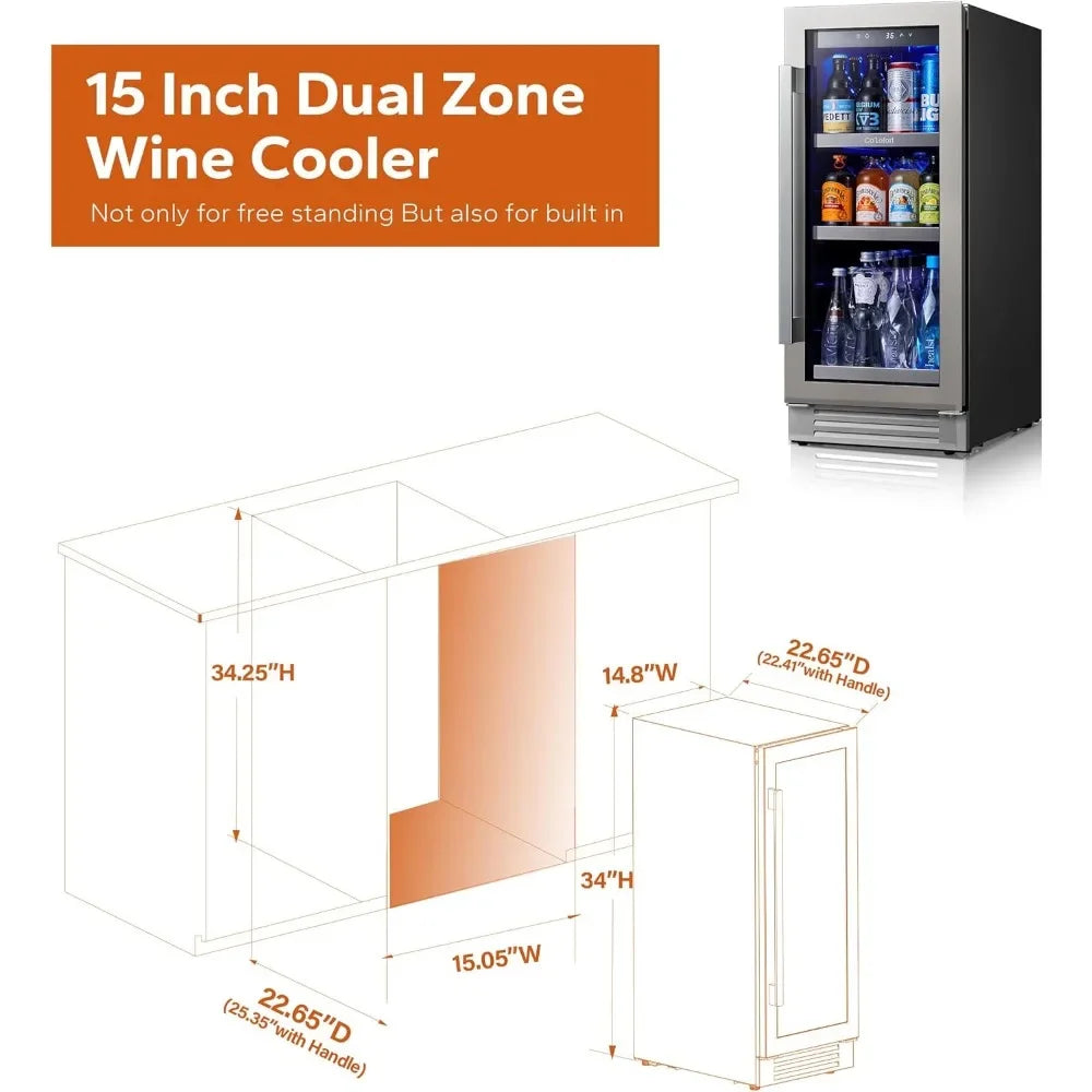 Independent 15 inch beverage refrigerator, capable of storing 100 cans of beverages. Refrigerator 34 ° F -54 ° F