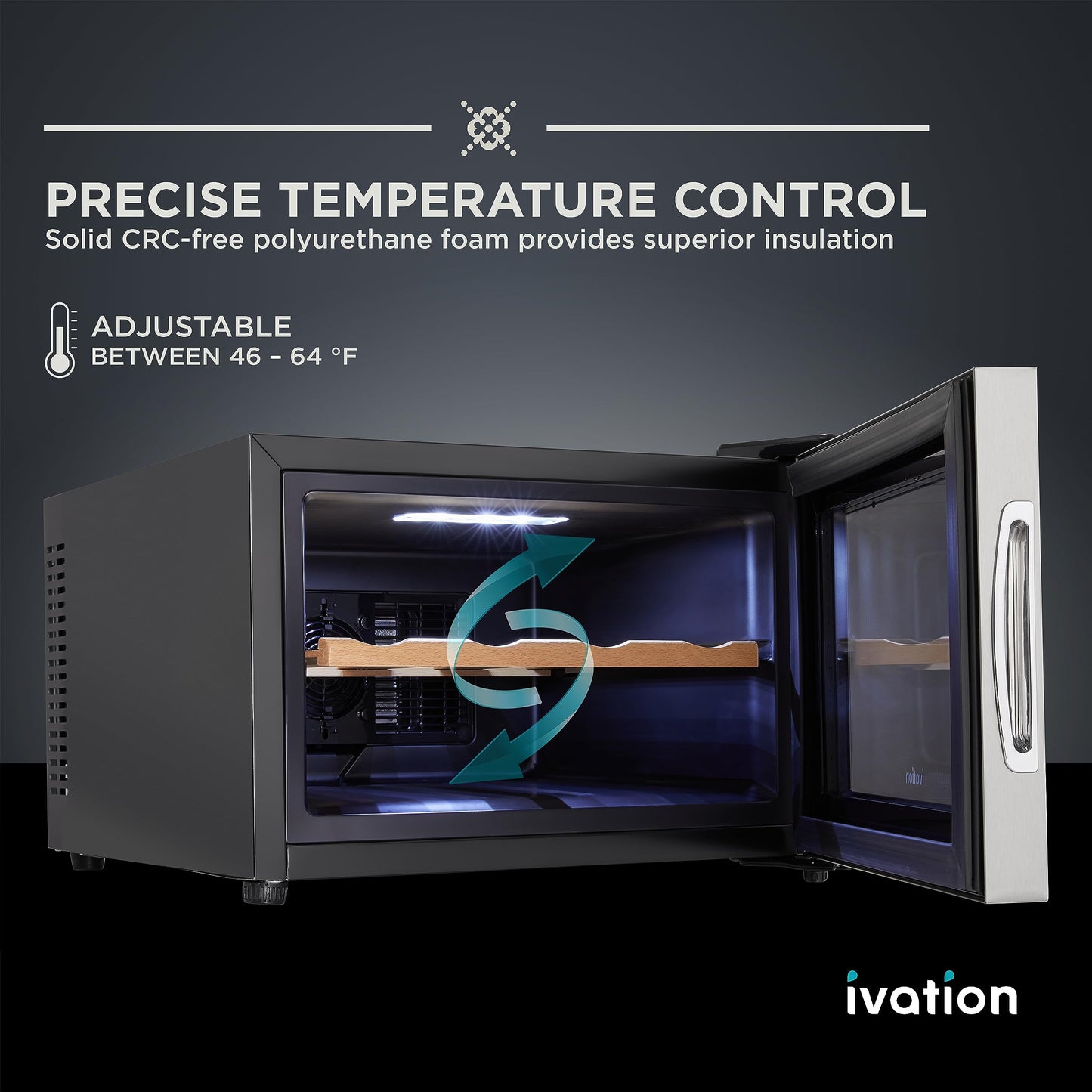 Ivation Premium Stainless Steel 8 Bottle Horizontal Thermoelectric Wine Cooler/Chiller Counter Top Red & White Wine Cellar w/Digital Temperature, Freestanding Refrigerator Quiet Operation Fridge
