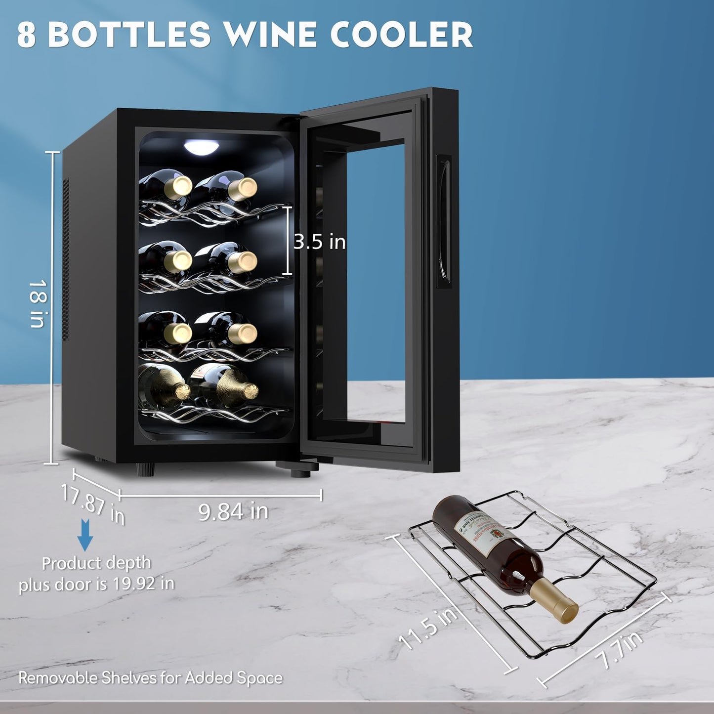 JINJUNYE 8 Bottle Wine Cooler, Wine Fridge Small, Countertop Wine Cooler Refrigerator with Temperature Control, 46-66โ Mini Freestanding Wine Cellars Glass Door, Gift for Wine Lover