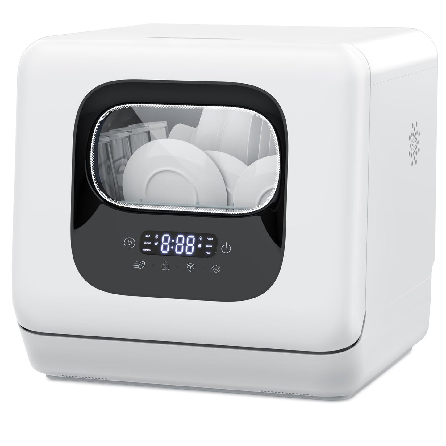 Joy Pebble Countertop Dishwasher, 28 Pieces Dishes/Cycle, 6 Washing Programs&Hot Drying, Dish Washer with 360°Dual Spray, with Child Lock&Delayed Start, Portable Dishwasher for Apartment/RV/Dorm