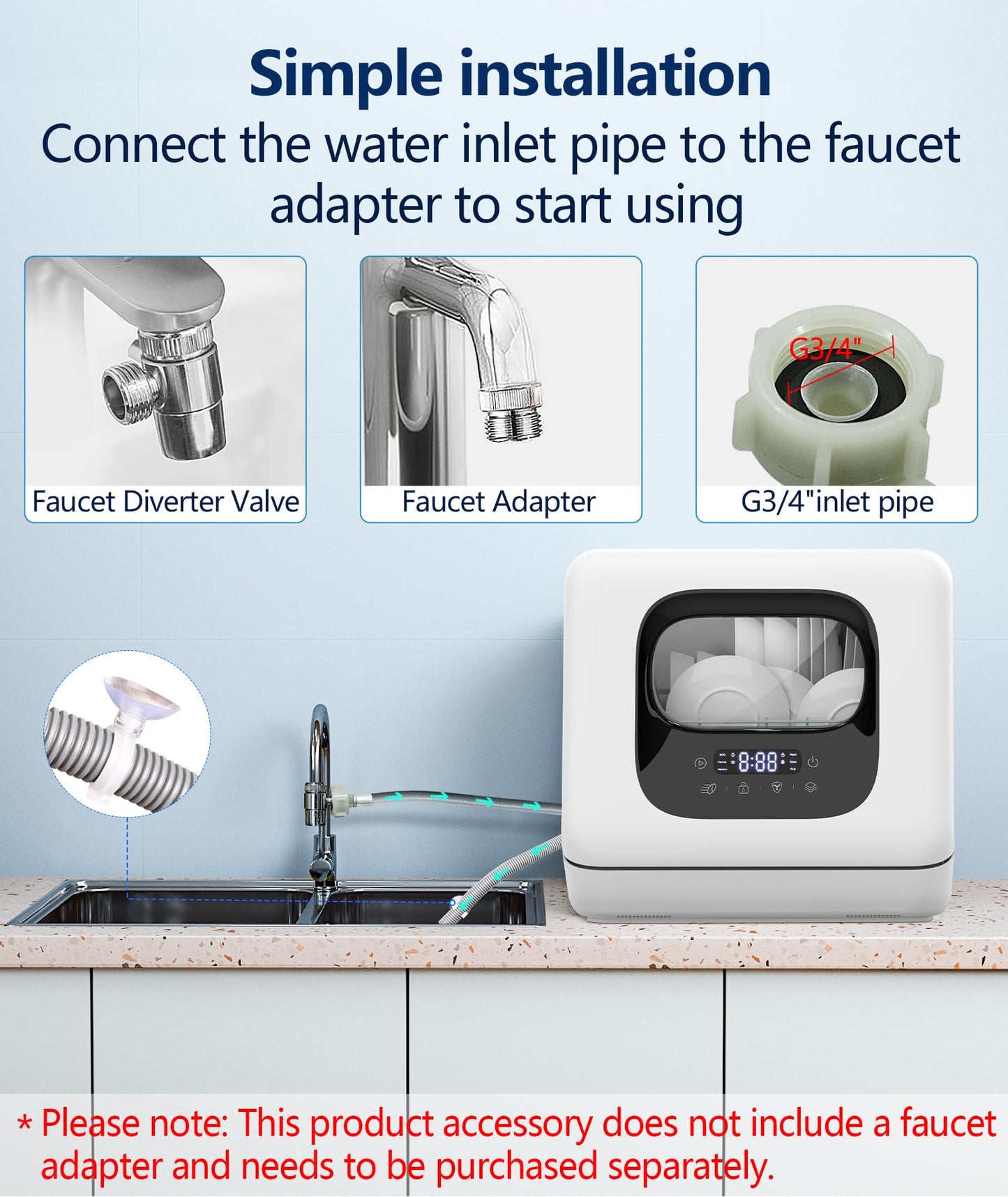 - 【Portable & Easy to Connect】: This compact portable dishwasher is easy to carry, lightweight and can be carried by one person, and it is easy to connect, just tighten the tubing to the faucet connector and dishwasher drain.Joy Pebble Dishwasher fits in most kitchens, making it an ideal kitchen appliance.