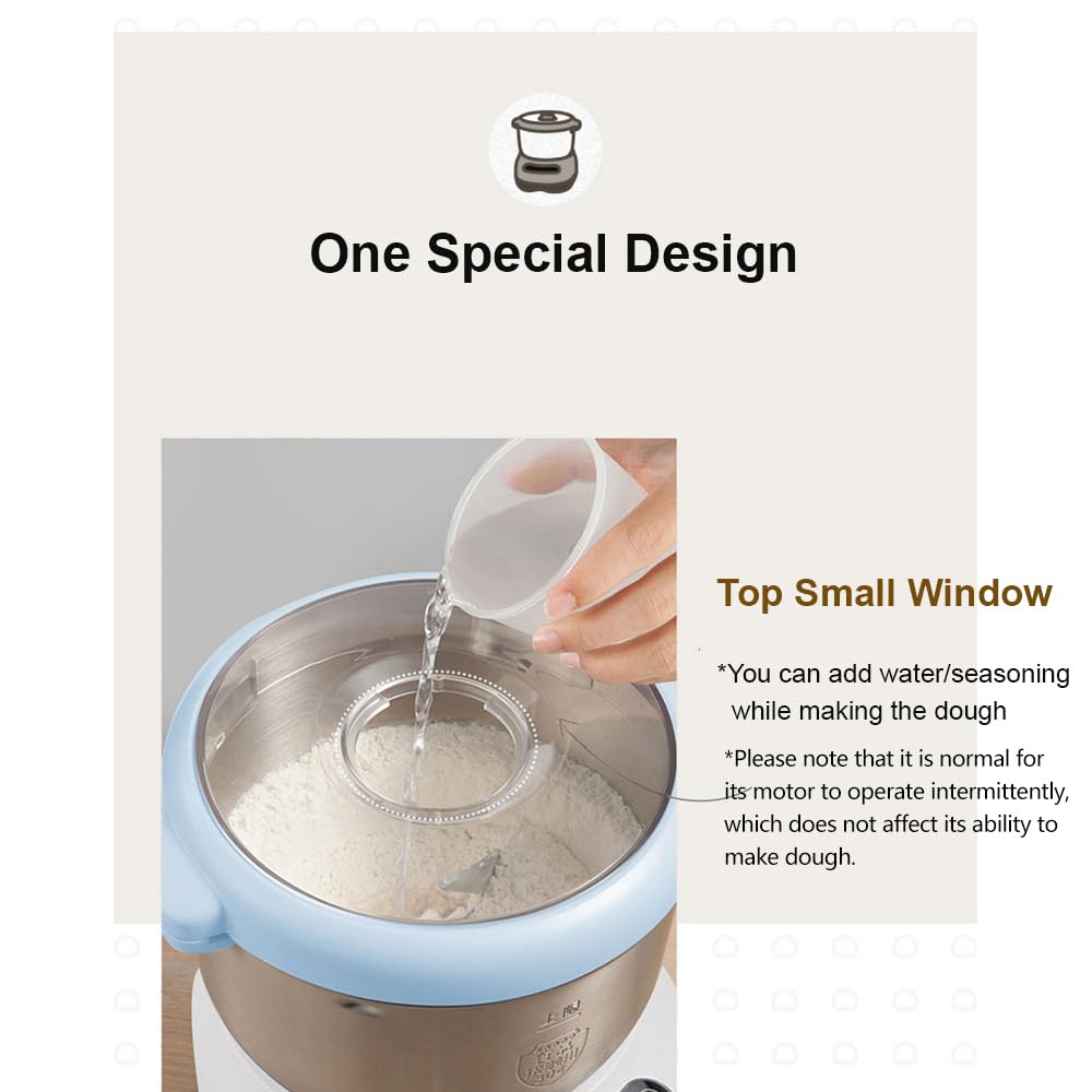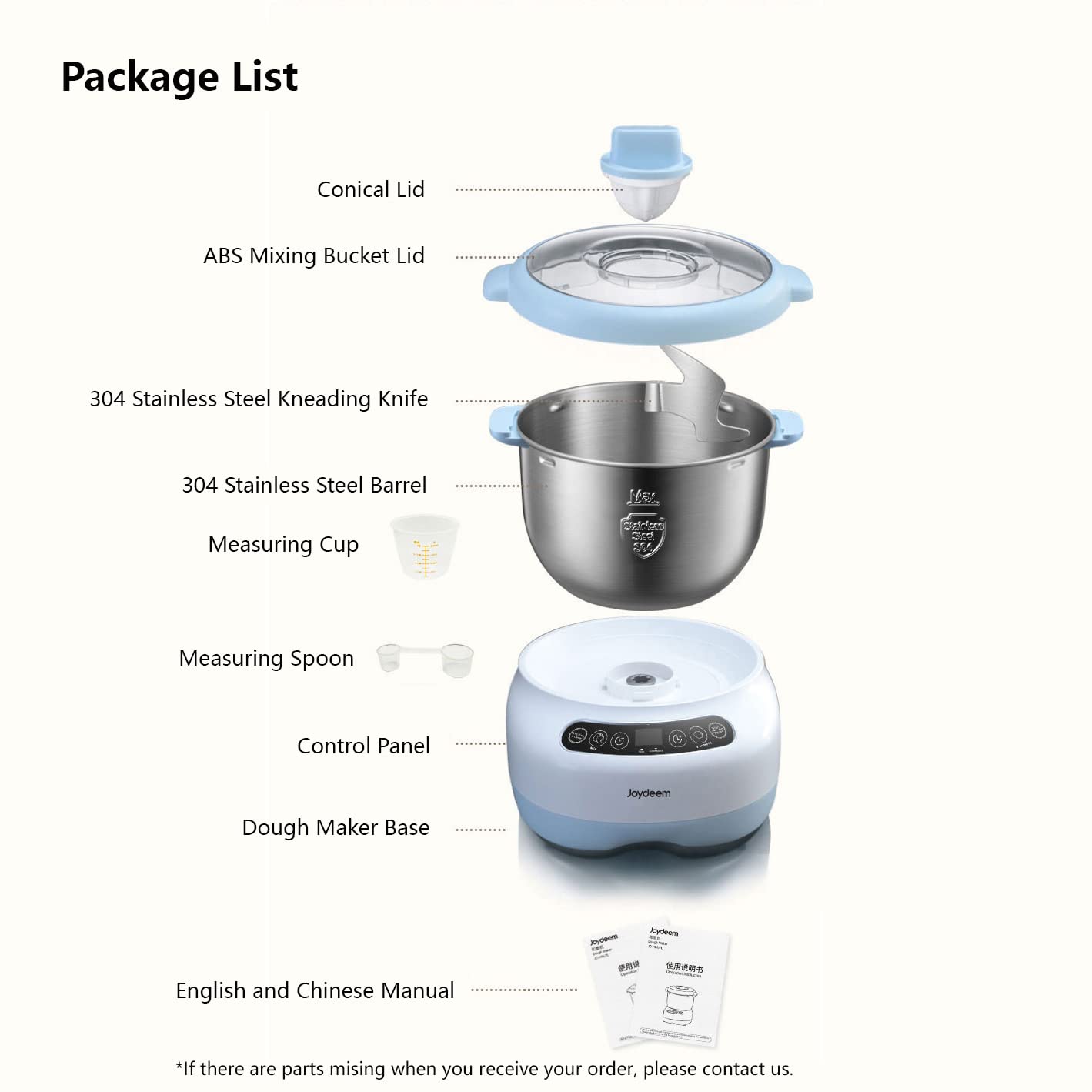 - Easy to Clean: Joydeem dough mixer has a stainless steel bucket and knife head, dishwasher safe(base can't); Top cover can be removed, you can add ingredients during the dough making process, or remove it for cleaning