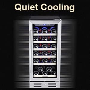 - ★STAINLESS STEEL DOOR & AIR OUTLET: Special stainless steel frame with 2 layers of tempered glass stabilize temperature levels inside and keep glass from fogging. This wine refrigerator with automatic defrosting function, this function would work every six hours. The air outlet is so cool and fit for different kitchens, you could put the unit anywhere you like.