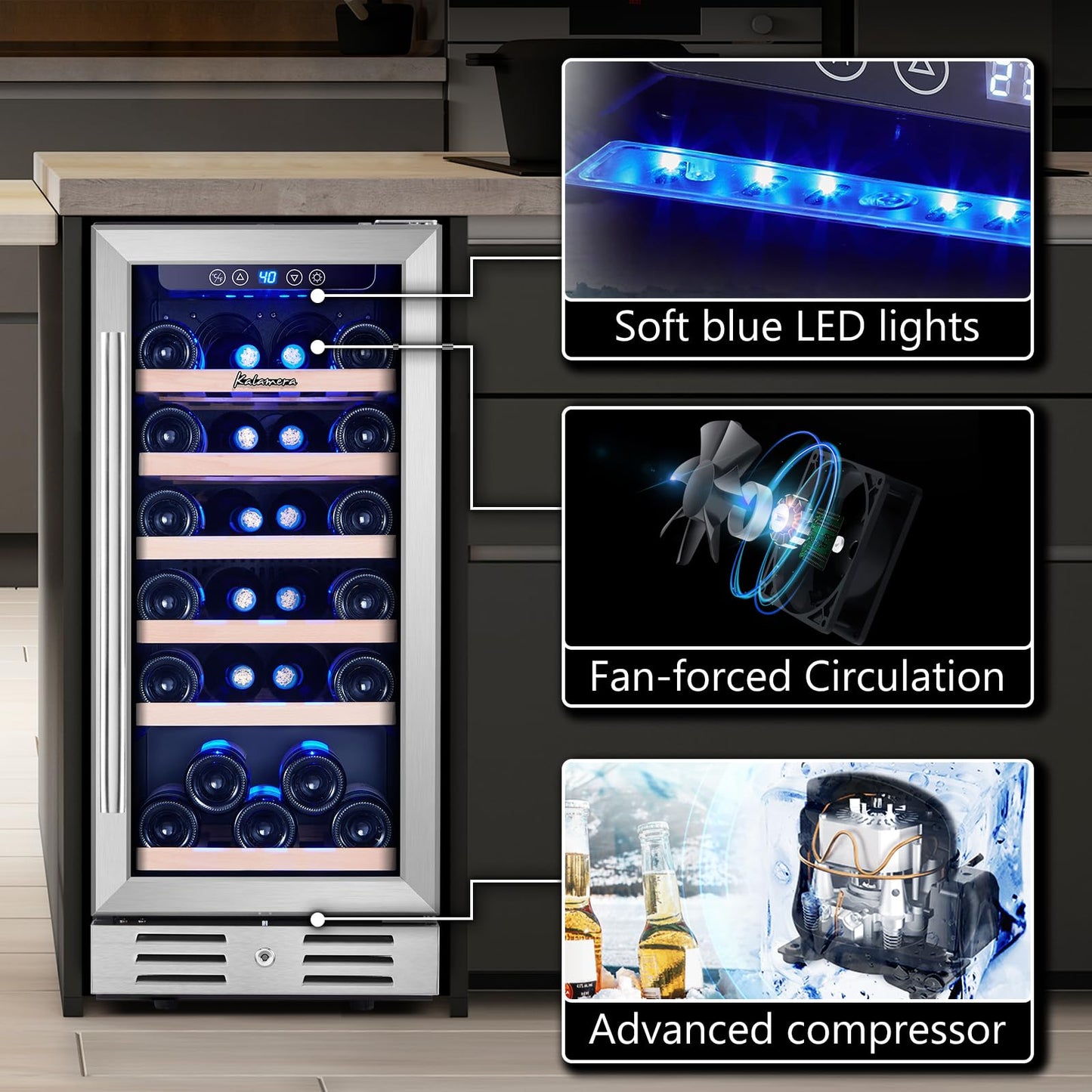 - ★SINGLE ZONE: LED control display makes it easy to set temperature from 40-66°F, providing perfect chilling temperature at all times! Kalamera unique design makes this small wine cooler could be installed as a built-in wine cooler or freestanding wine fridges. This mini wine cooler could hold the drink you like too. You would not just enjoy your wine, could enjoy your drink too.