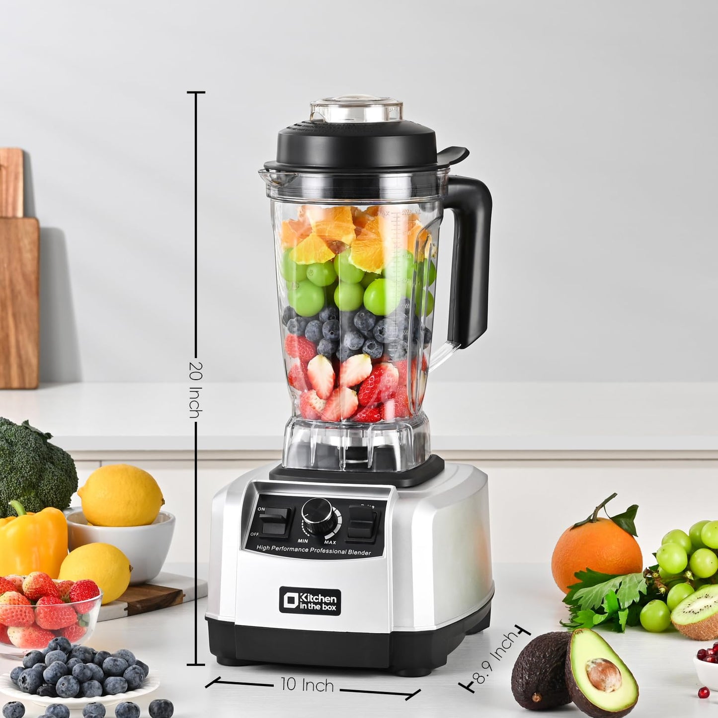 Kitchen in the box Blender, 68 OZ Professional Countertop Blender, 1450W High Performance 2HP Blender, BPA Free Large Capacity Blender, Smoothies, Ice Crush, Milkshake (Silver)