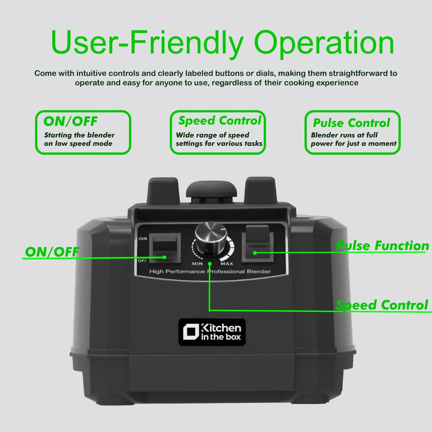 - 68 OZ Large Capacity : The Kitchen in the box Blender boasts a spacious 68 oz. break-resistant and BPA-free Tritan container, ensuring it can handle large quantities of ingredients without compromising its quality. Simply remove the cap, add your ingredients, and continue blending without any interruptions.