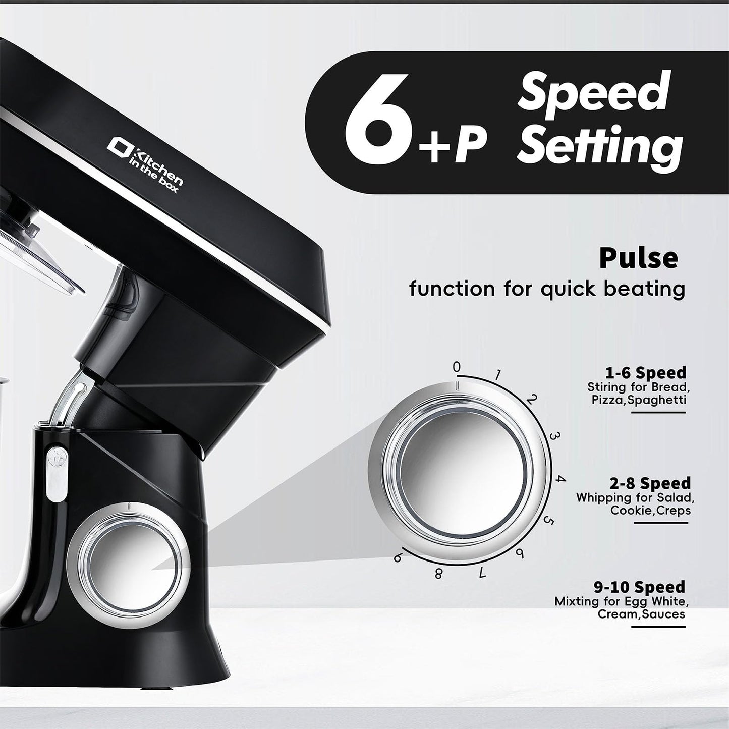 Kitchen in the box Stand Mixer, 900W 7.5QT Kitchen Electric Mixer, 6-Speed Tilt-Head Food Mixer for Baking with Dough Hook,Wire Whip,Beater (Black)