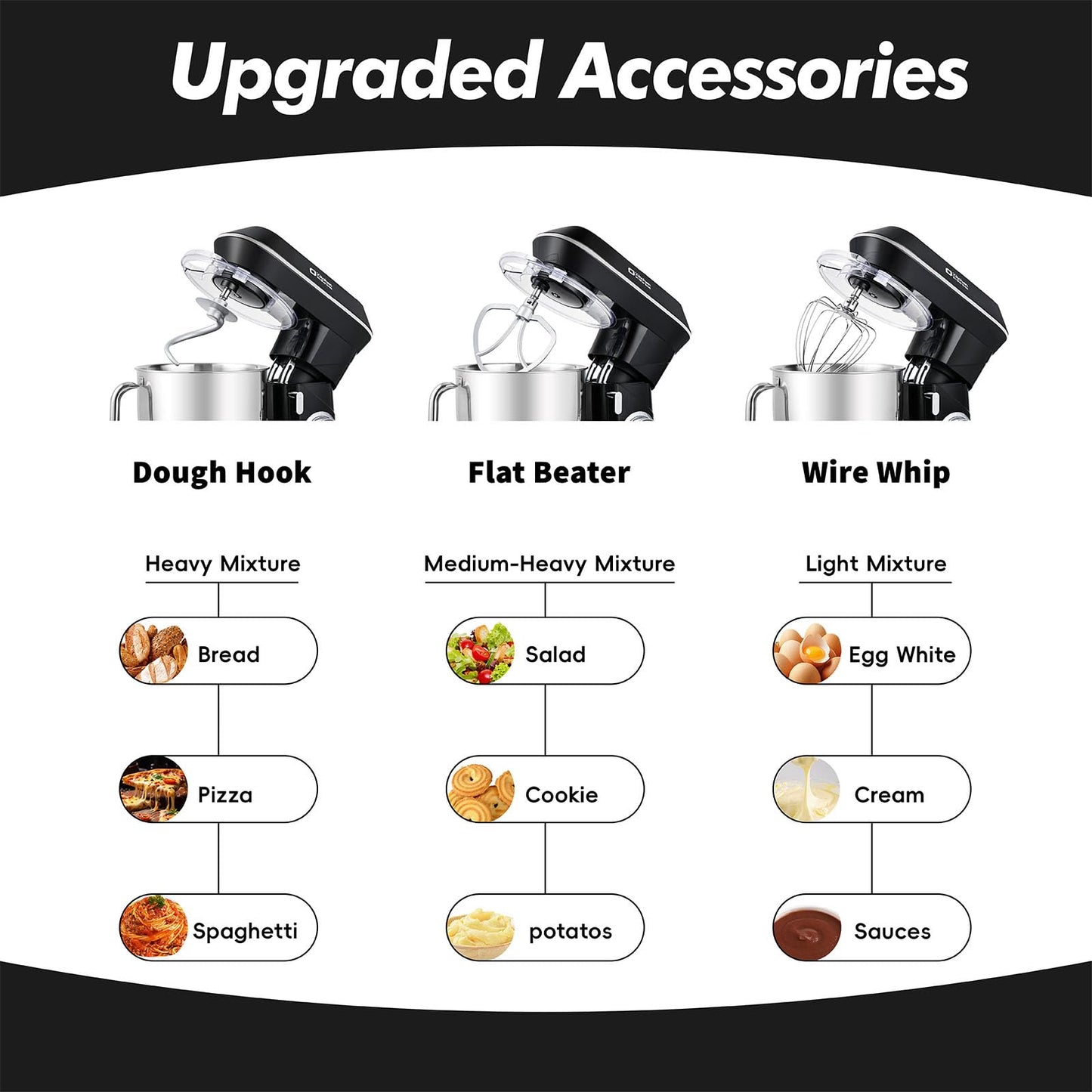 - 900W High Performance Motor: Our stand mixer is equipped with a 900W motor, upgraded motor has higher stirring efficiency and can fully mix all the ingredients in the bowl and easily complete the mixing of bread dough, thick batter and egg whites