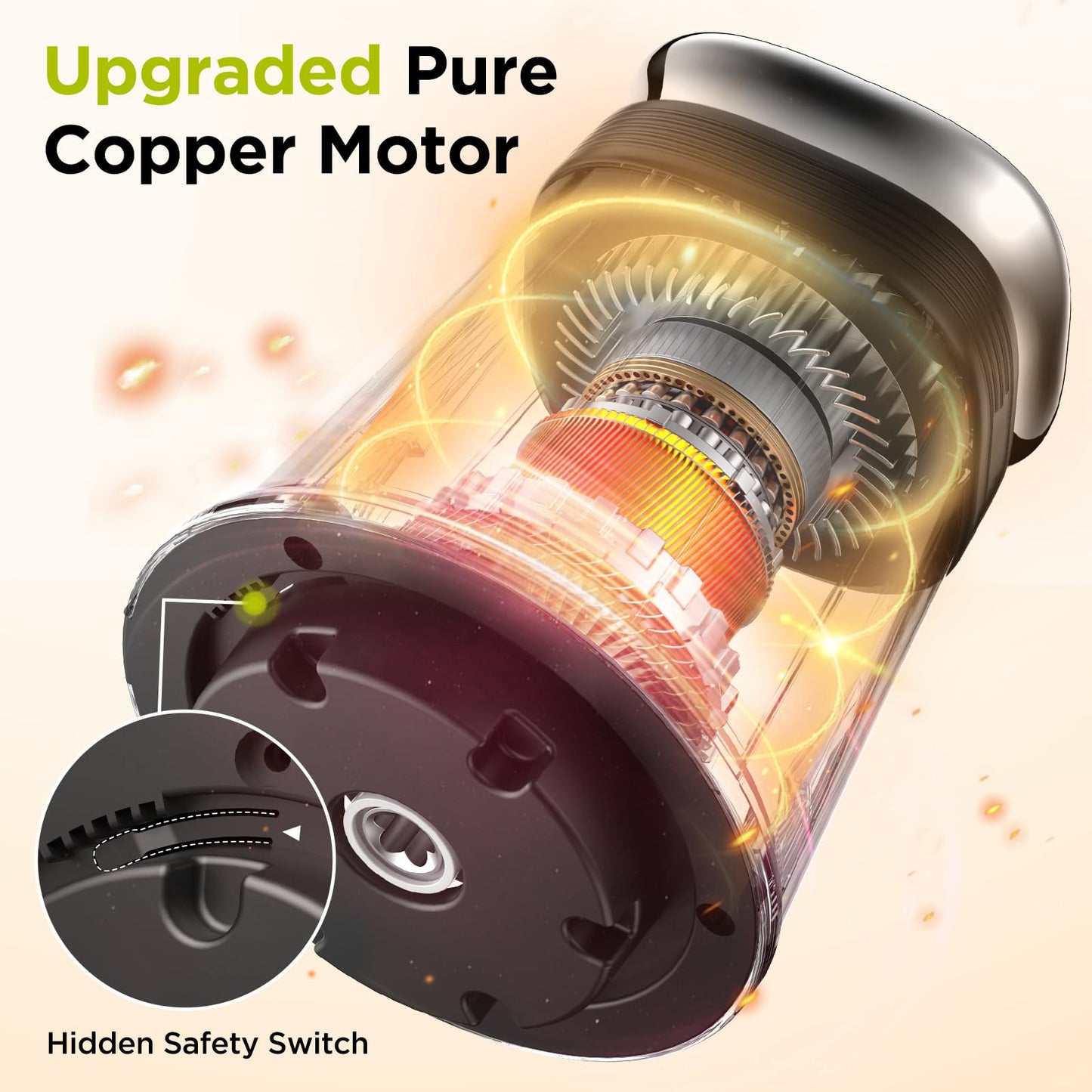 - Universal--Built with a 500W powerful pure copper motor and S shaped Bi-level blades, this electric food chopper is able to chop, blend, puree, mix and mince throughly and evenly in no time, with each task taking approximately 10 seconds to done.