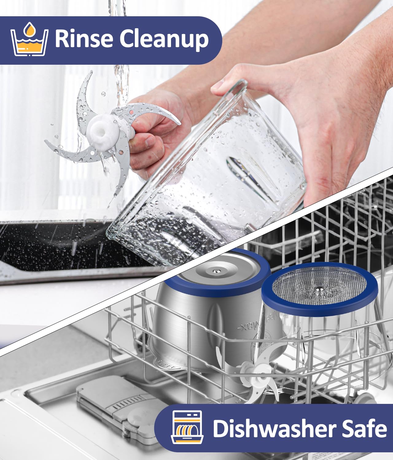 - 2L Large Capacity--Two bowls make you handle both foods at the same time and without mixed flavor neither. Bowls are available for stack, save storage space for your counter. Rubber rings to help bowls stay in place and dampen noise as it vibrates against the counter. We recommend to hold bowl tight during operation to avoid shake and fall. Both bowls and blades are detachable and dishwasher safe.