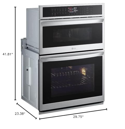Details: LG WCEP6423F 30 Inch Smart 6.4 cu. ft. Total Capacity Electric Combination Double Wall Oven with Wi-Fi Enabled, 2 Oven Racks, Convection, Sabbath Mode, Convection Cooking, Self-Cleaning, Wi-Fi Connected, PrintProof Finish, Built-In Air Fry, EasyClean Interior, ThinQ Technology, SmoothTouch Controls, Sensor Cooking, Scan-to-Cook Technology, SmartThinQ Works with Google Assistant/Amazon Alexa in PrintProof Stainless Steel Quick Specs View More Width: 29.75" Depth: 23.375" Height: 41.8125" Cutout Width: 28.5" Cutout Depth: 24" Cutout Height: 43.4375" Type: Oven/Microwave Combo Capacity: 6.4 cu. ft. Upper Capacity: 1.7 cu. ft. Lower Capacity: 4.7 cu. ft. Convection: Yes Self-Cleaning: Yes Control Type: Digital Sabbath Mode: Yes Convection Cooking Wi-Fi Connected PrintProof Finish Built-In Air Fry EasyClean Interior ThinQ Technology SmoothTouch Controls Sensor Cooking Scan-to-Cook Technology SmartThinQ Works with Google Assistant/Amazon Alexa 1 Year Parts/Labor Warranty*