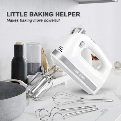Lord Eagle Hand Mixer Electric 400W, 5 Speed handheld Mixer, 5 Stainless Steel Accessories for Baking Cake Egg Cream Food Beater, Turbo Boost/Self-Control Speed + Eject Button (White)