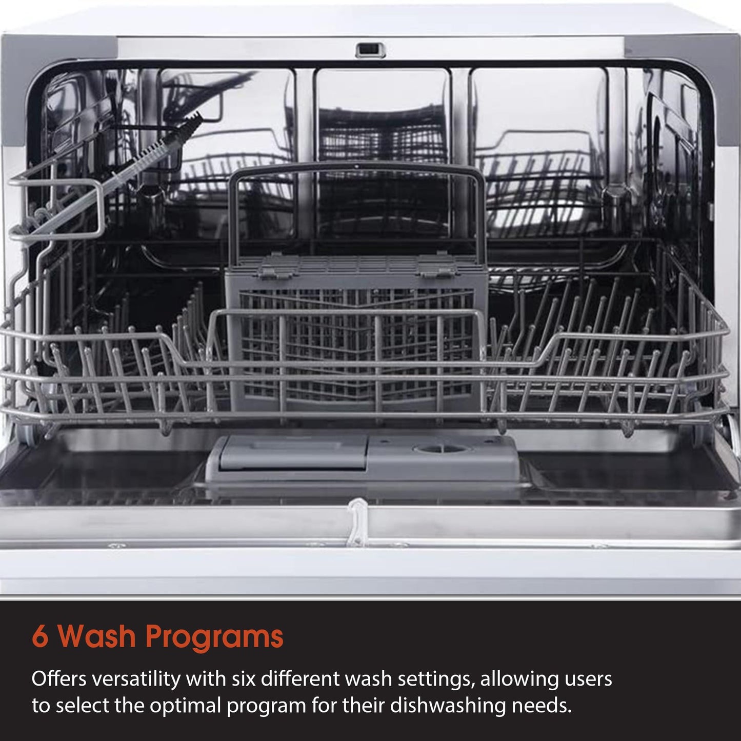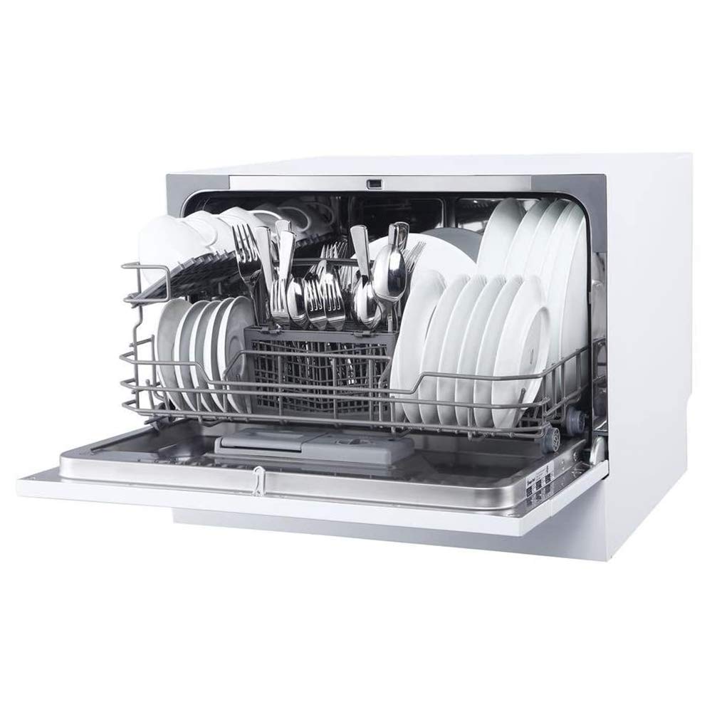 - ENERGY STAR DISHWASHER: Small, Energy Star-rated countertop dishwasher can hold up to 6 place settings and features 6 wash programs; Includes 24-hour delay and EZ Clean removable filter