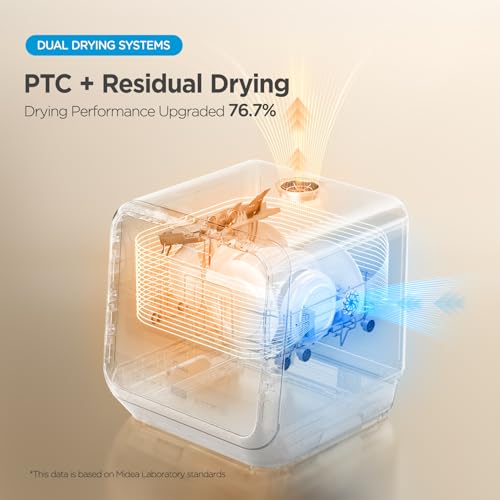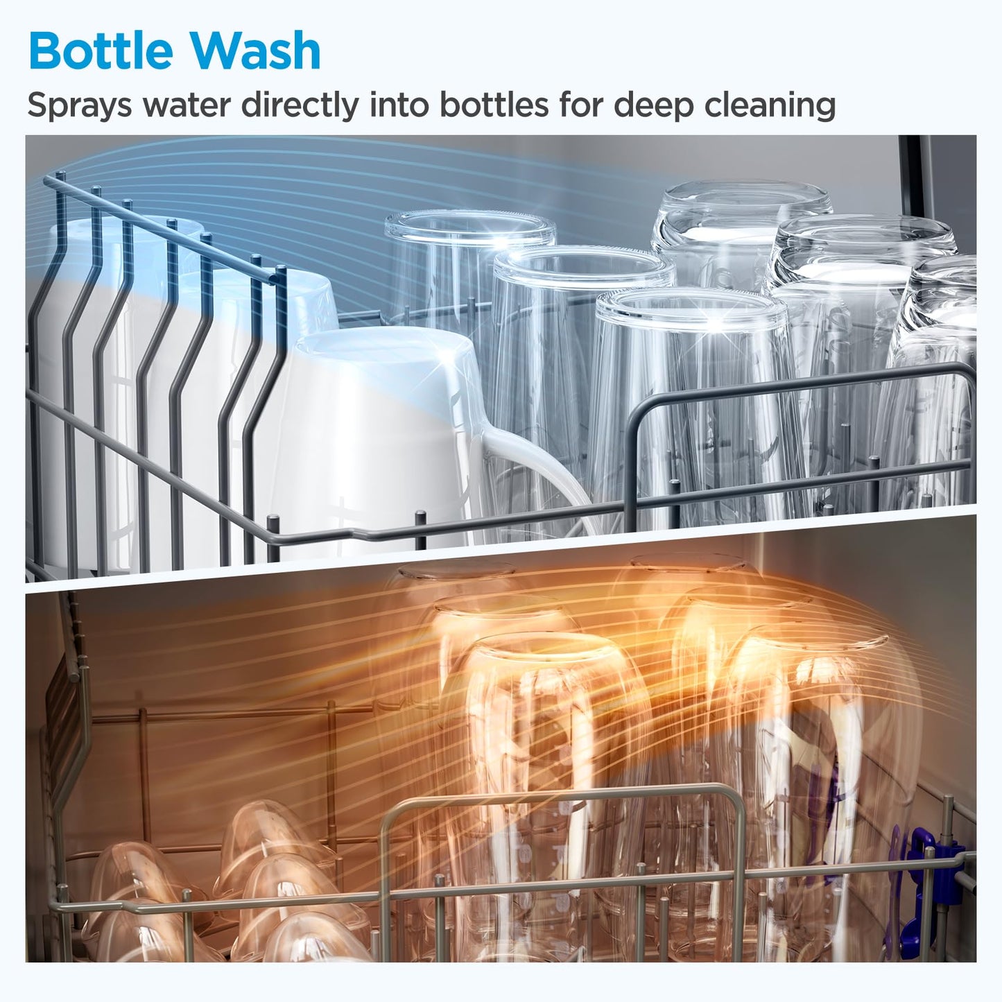 - 【DUAL DRYING SYSTEMS】 PTC + Residual Drying. Drying Performance Upgraded 76.7% and give you better drying solution for bottles and children's cutlery. With bottle rack, it is perfect for cleaning Baby Bottles and special care for baby bottles
