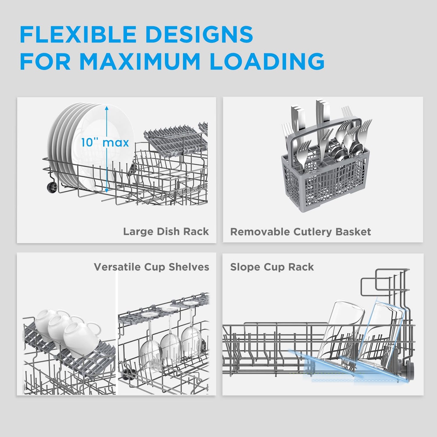 - 【Speed Program】- Only takes you 45 minutes to get all dishes cleaned, perfect for hurry-up situations, like holding a multi-round party. Accompanied with Energy Star compliant, water consumption can be as low as 2.77 gallons of water, which greatly saves your costs.
