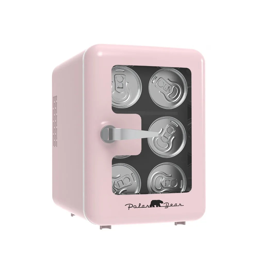 Mini Fridge Cooler, 6.5in 4-Liter Retro Window Standard Door Compact Mini Refrigerator, Integrated Carry Handle, New