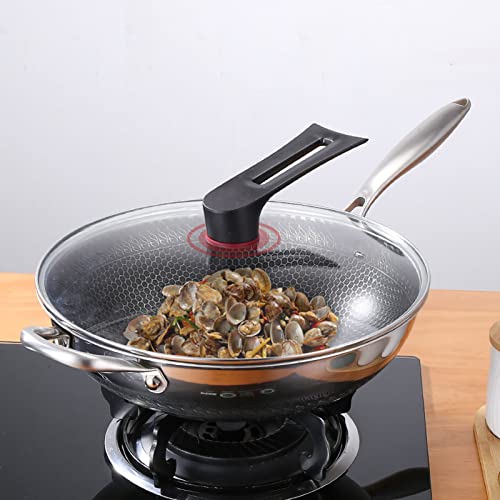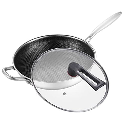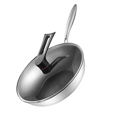 - Nonstick Wok Pan: Kitchen stainless steel wok is made of stainless steel without coating, which is safer and healthier.The interior nonstick layer is made of Honeycomb texture, which has a better nonstick performance than the previous generation product.stainless steel all the way around for maximum durability and fast, even heat distribution.