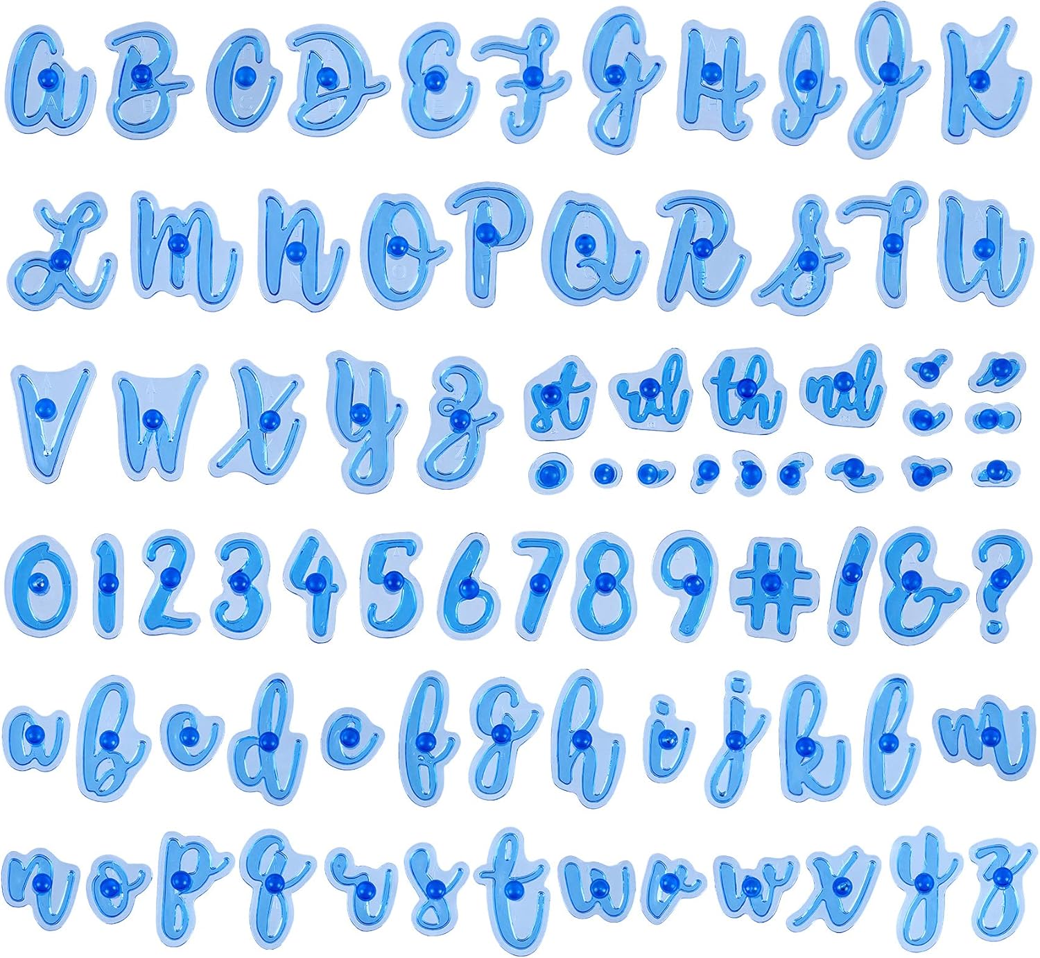 - 【Package Include】the package includes 26 pcs upper alphabet, 26 pcs lower alphabet, 10 pcs numbers and 21 pcs special characters stamp, sufficient quantity and styles to meet your needs in cake cookie DIY making.