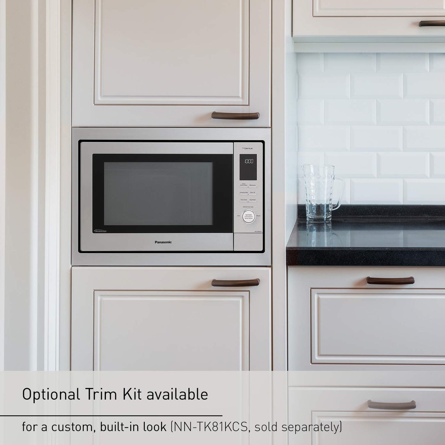- Sleek, Space Saving Design: Large capacity, small overall footprint - 22”W x 13.4”H x 17.7”D with 14.2” turntable; place on countertop or make it a built in microwave oven with optional trim kit (NN-TK81KCS)