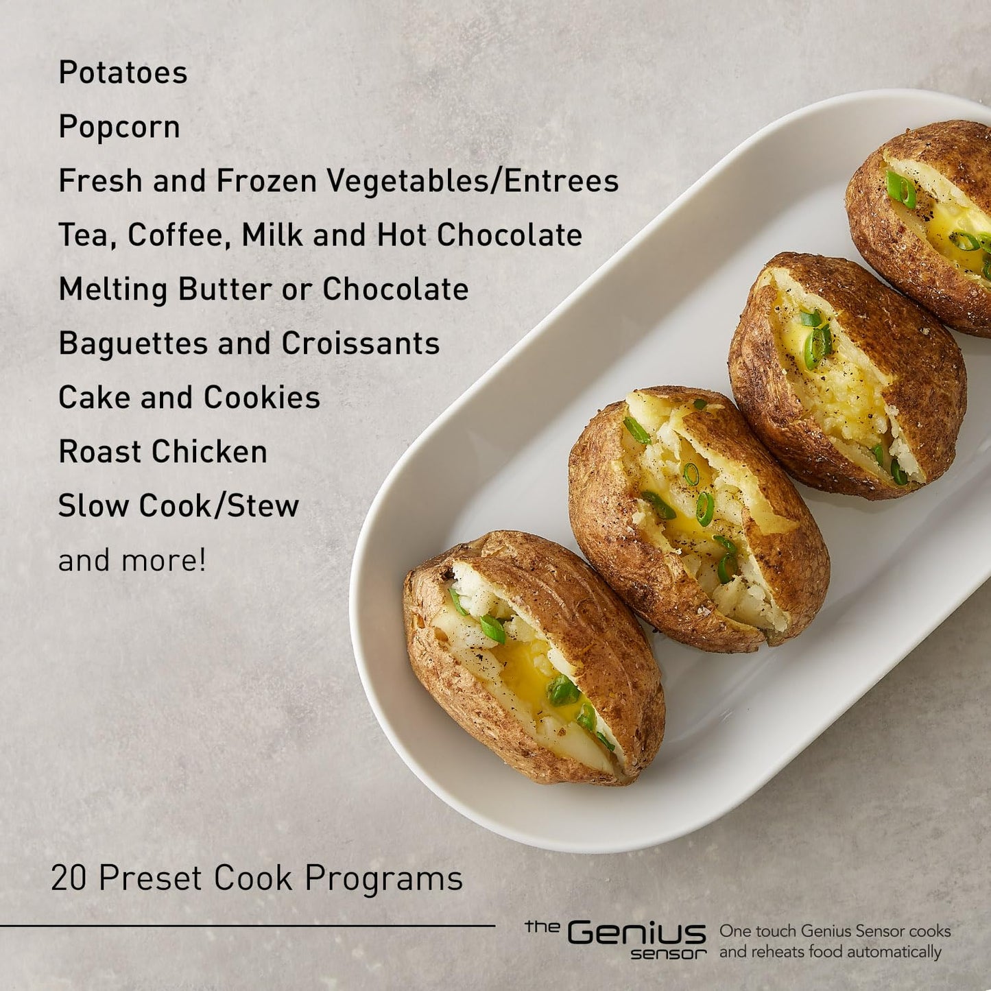 - Smart, Even Cooking Power: 1000-Watt Panasonic inverter microwave technology for smart, even defrosting, reheating, cooking, & warming; Genius Sensor Cook, Turbo Defrost, and other dedicated settings for easier cooking