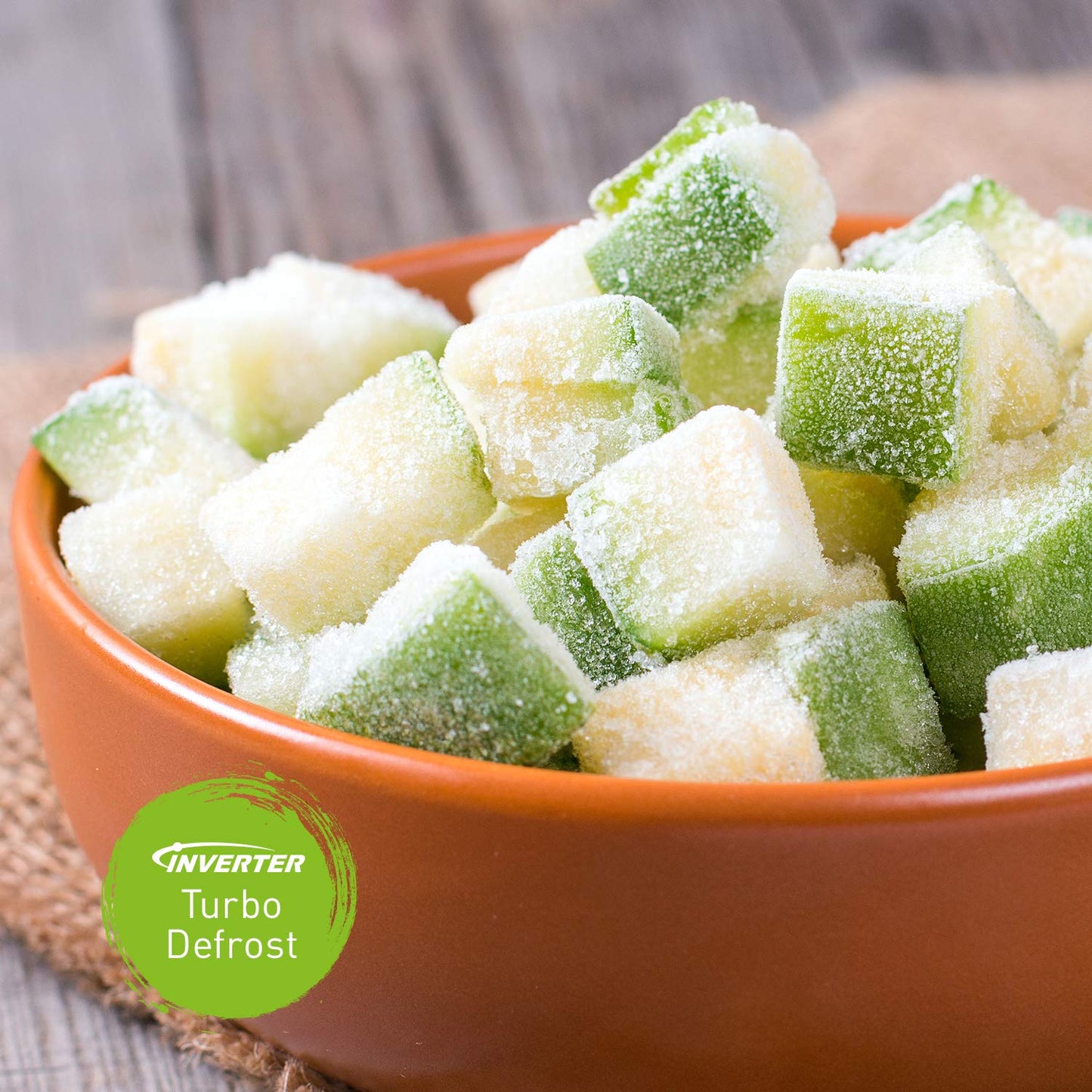 - Inverter Turbo defrost for all your frozen foods, Turbo defrost accelerates defrosting time to thaw more quickly and thoroughly for more flavorful foods