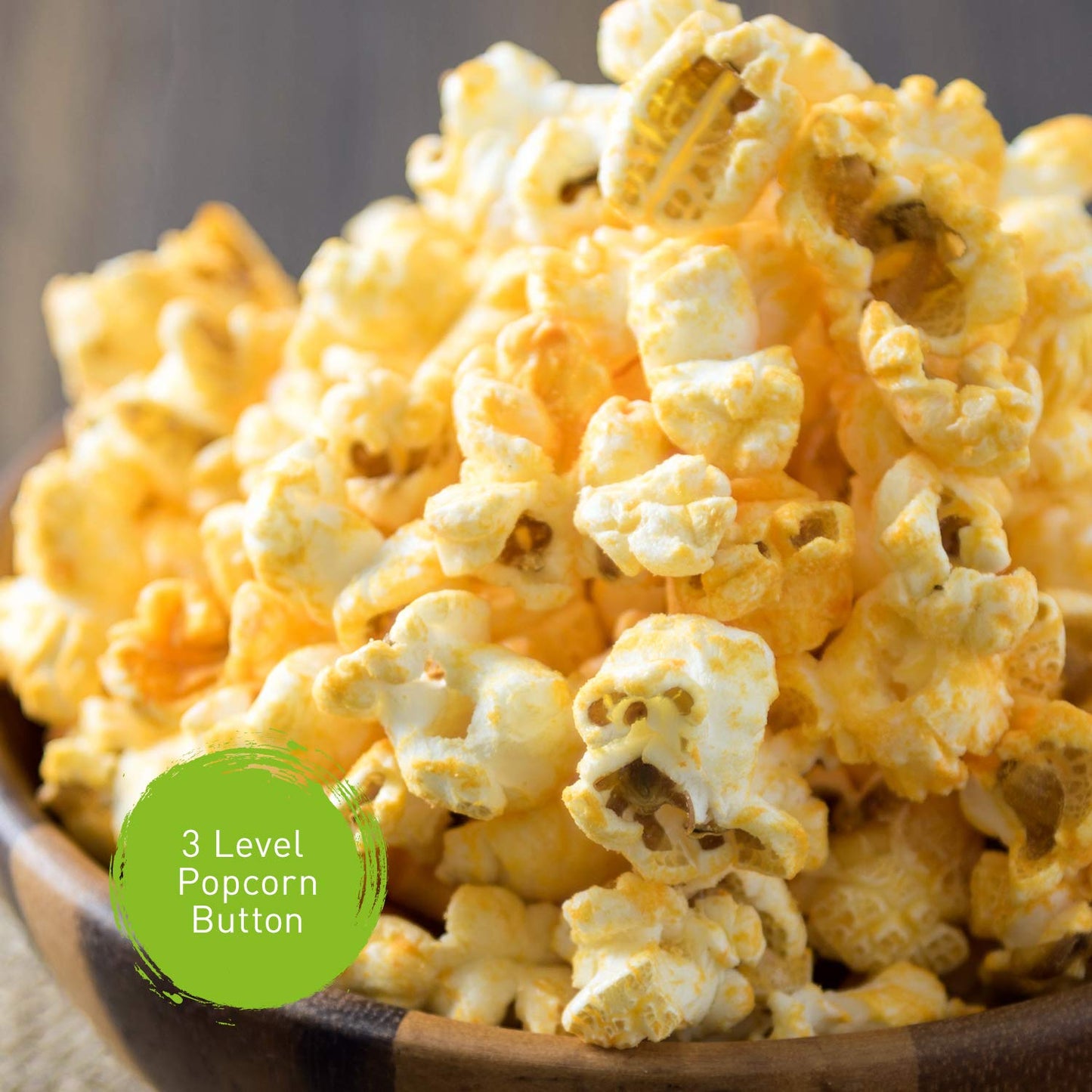 - 3-Level popcorn button popcorn lovers can choose the optimal popping temperature and time for different microwave bag capacities (3.2, 2.7, or 1.5 ounce ) for Hot, sumptuous snacking