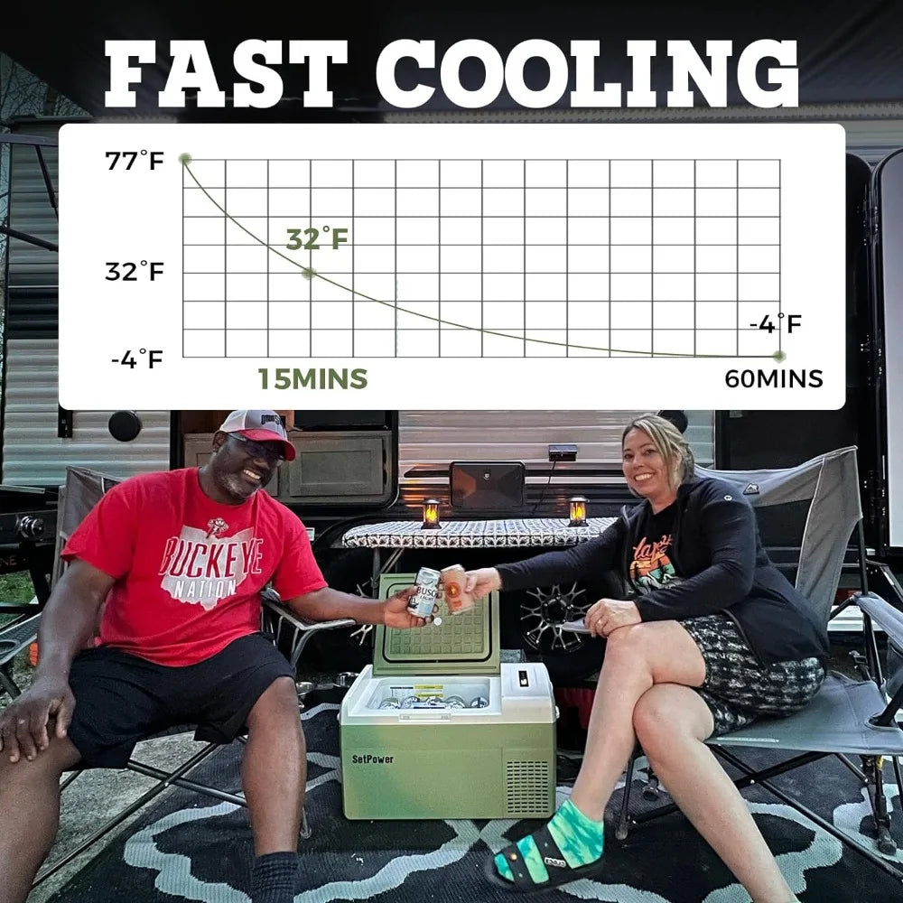 - 【Fast Cooling & Energy Saving】Equipped with high quality variable frequency compressor, 12v Refrigerator can achieve fast and deep cooling from 68℉ to -4℉, meeting various storage temps you need! No matter works as a freezer or fridge, the average energy consumption of our car fridge is only 55W, it's ideal for camping, fishing, picnics, barbecues, boating, home parties, and other indoor and outdoor activities.