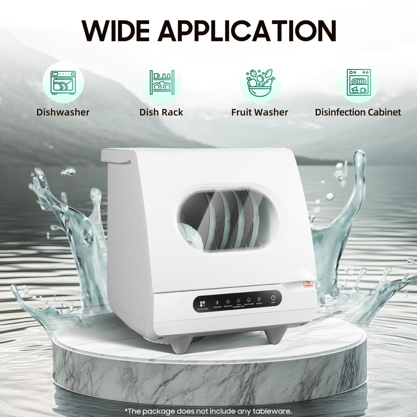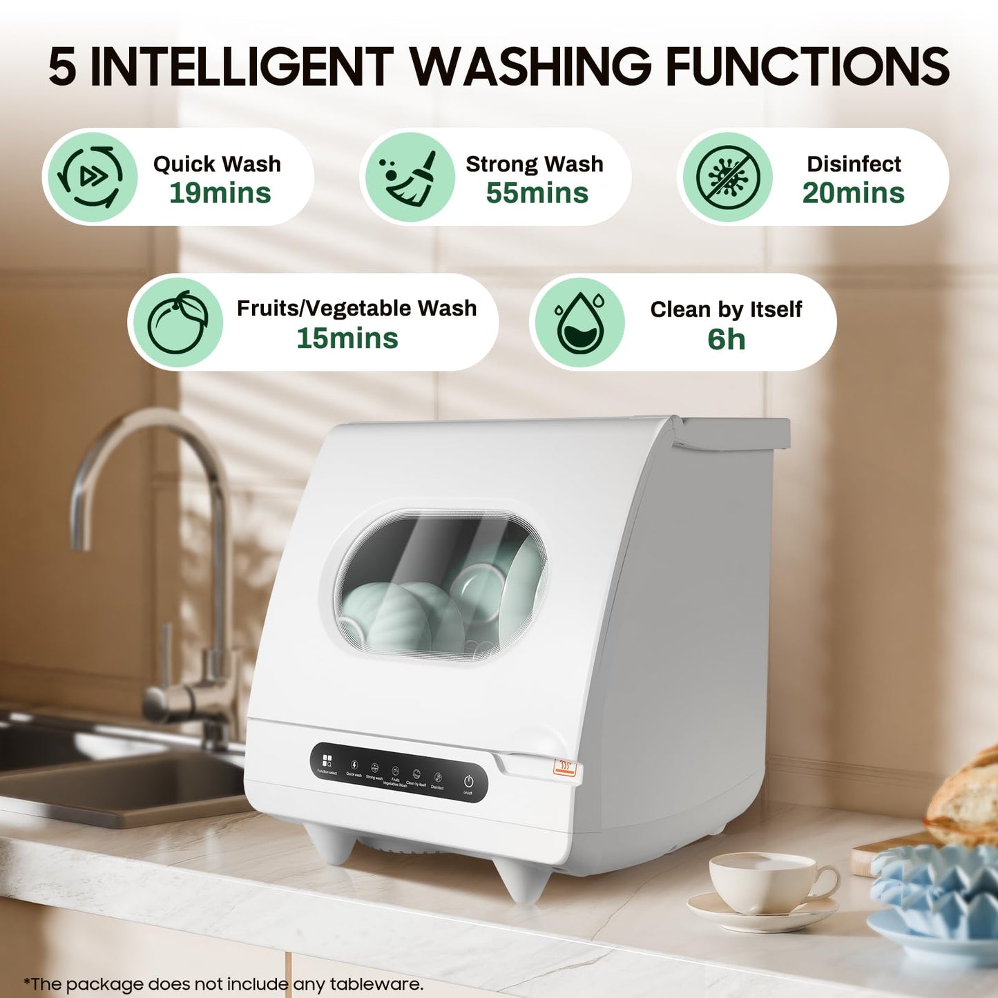 Portable Countertop Dishwasher 158℉ Mini Dishwasher 5 Programs 5L Automatic Dishwashing Machine 360° Spray Deep Cleaning With Air Drying 1200W Compact Dishes Cleaner