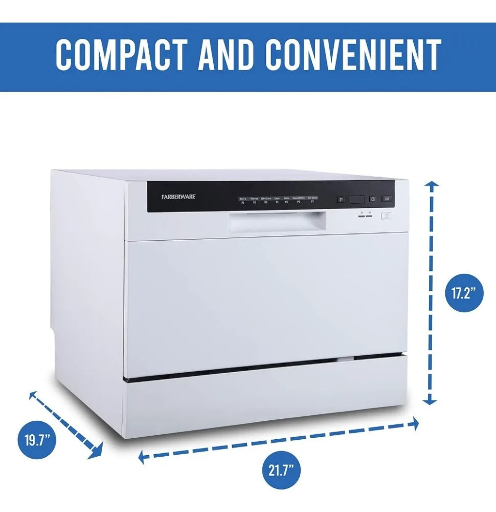 - COMPACT AND PORTABLE: This mini tabletop dishwasher is great for small kitchens, apartments, RVs, and boats with available hookups. The space inside the dishwasher is big enough to fit 10-inch diameter dishes.