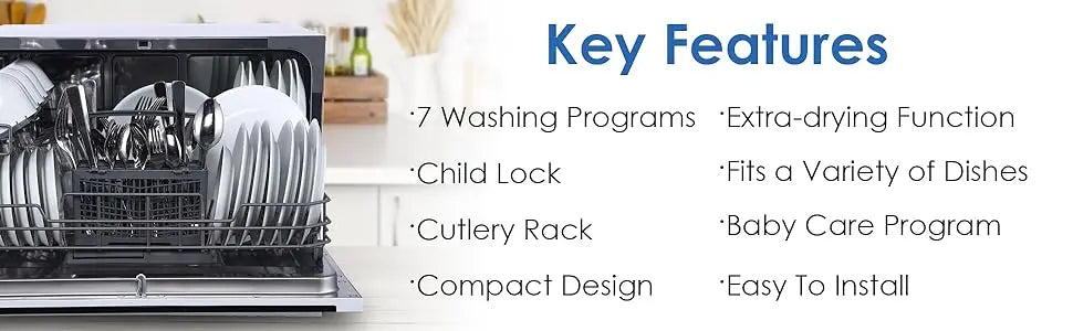 Portable Countertop Dishwasher,7-Program System for Home, RV and Apartment, Wash Dishes, Glass and Baby Products,Hookup Required