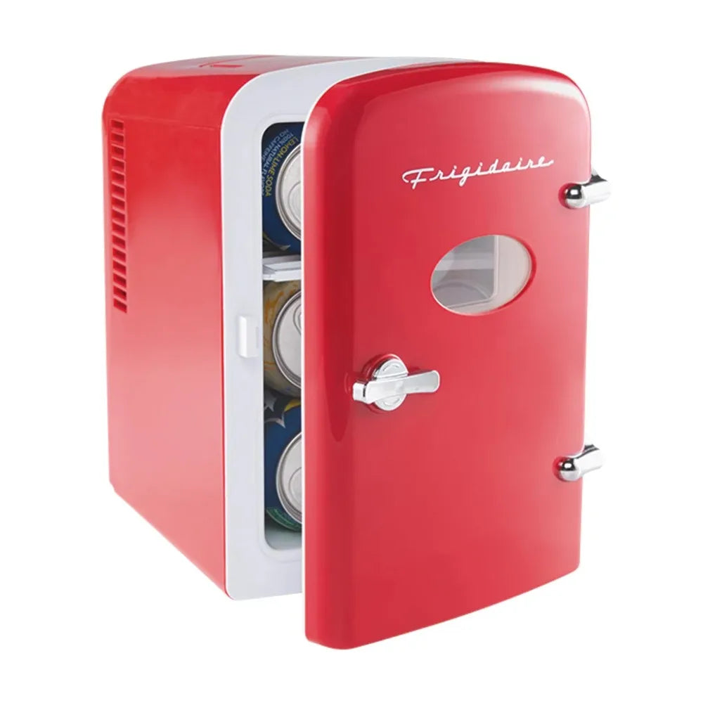 Experience the ultimate convenience and versatility with the Retro 6 Can Mini Beverage/Skincare Cooler. This compact powerhouse offers versatile storage, accommodating 6 cans or organizing your skincare essentials for a refreshing daily routine. With its portable design and carrying handle, you can take it anywhere and place it on any surface with ease. The heavy-duty construction ensures secure storage, while its furniture-friendly design eliminates worries of scratches. The convenient viewing window allows you to see what's inside without opening the door, and the easy-to-clean interior ensures effortless maintenance. Powered by a 110V wall outlet or a 12V car adapter, this mini fridge operates efficiently and quietly, cooling up to 20°F below ambient room temperature. Indulge in the perfect blend of functionality and style with this exceptional mini fridge.