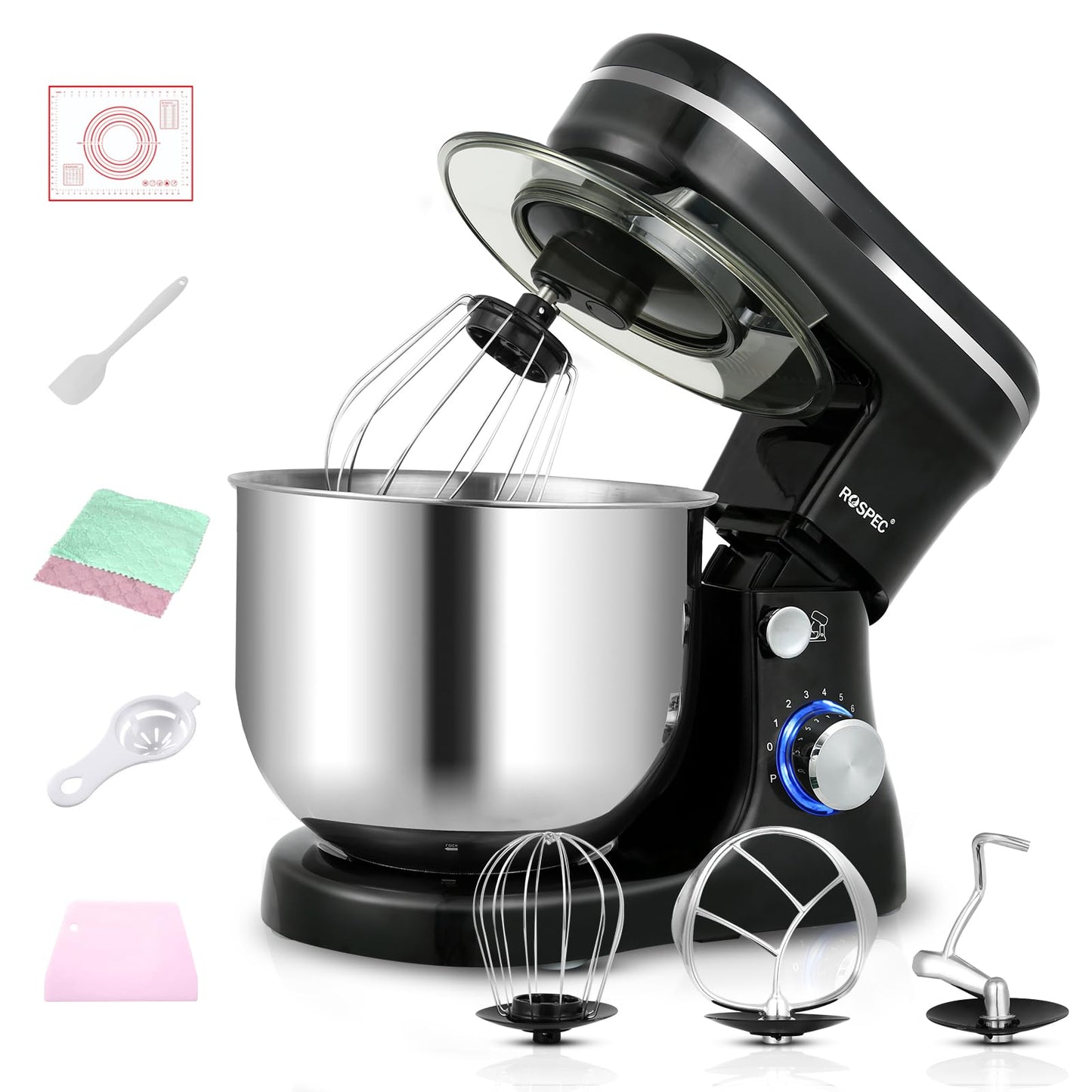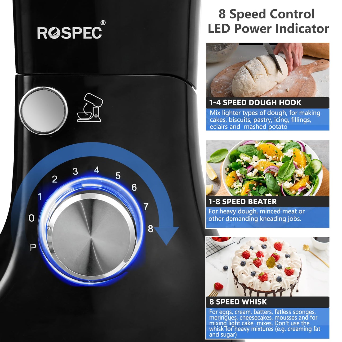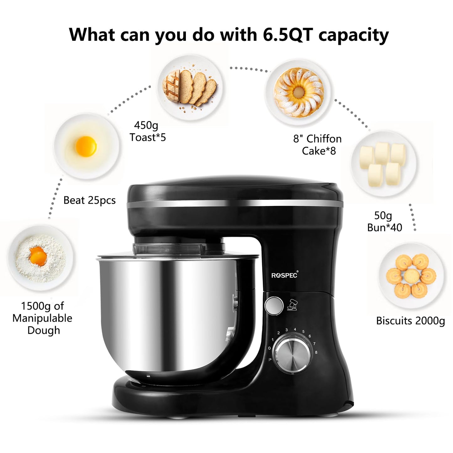 ROSPEC Stand Mixer,6.5-QT 660W 8-Speed Tilt-Head Food Mixer, Kitchen Electric Mixer with Dough Hook, Wire Whip & Beater (Black)