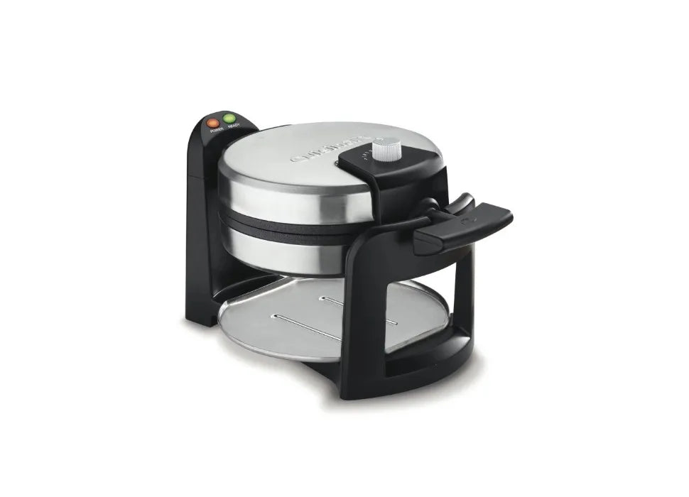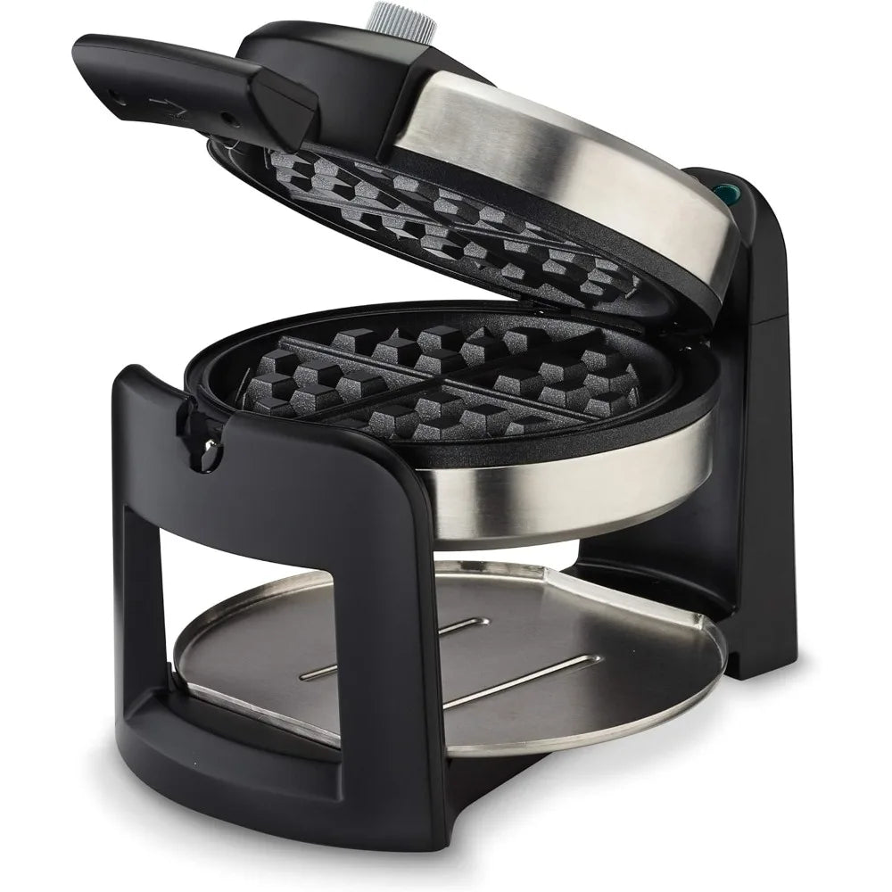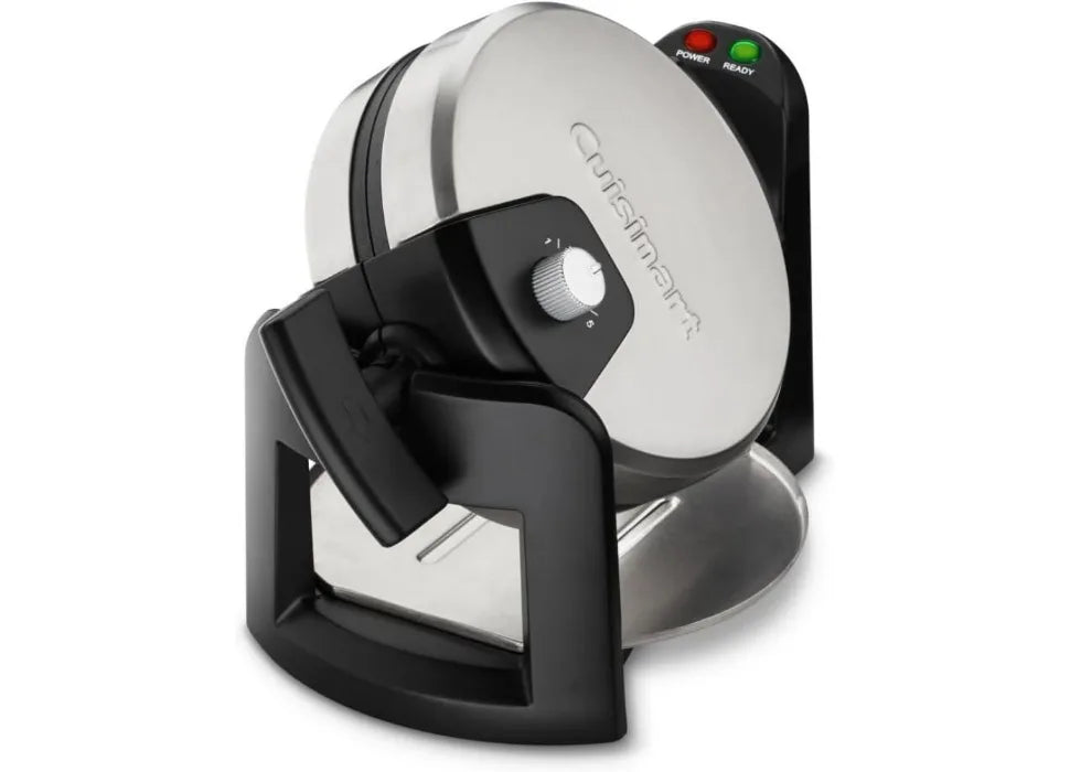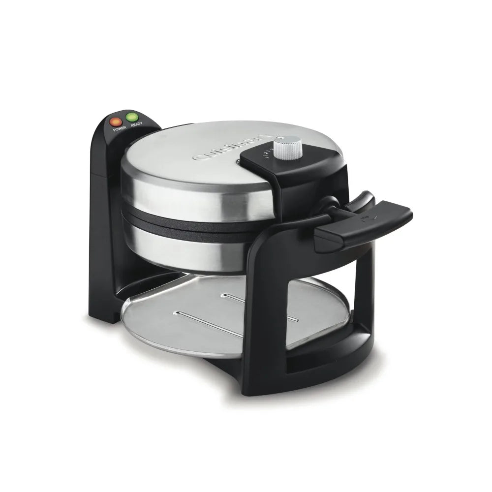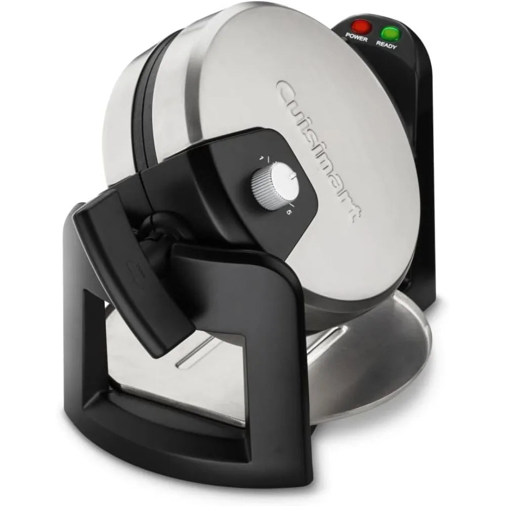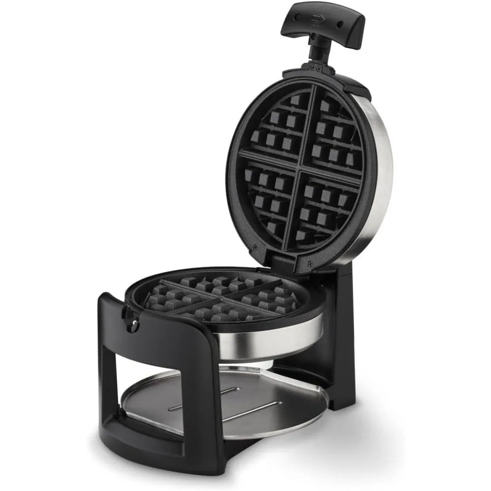 Round Flip Belgian Waffle Maker, Black/Silver, 1 inch thick, waffle maker mini