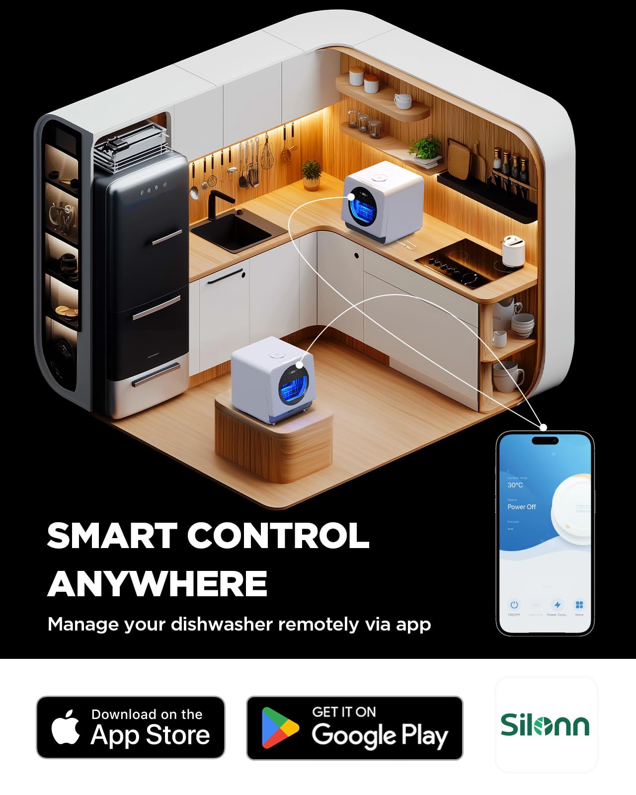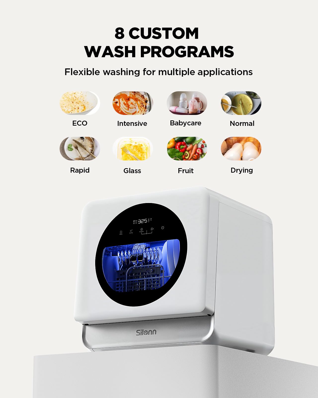 Silonn Compact Countertop Dishwasher with Smart App Control, Portable Dishwasher Countertop with Triple-Jet Cleaning System, Built-In Water Tank, Ideal Mini Dishwasher for Kitchens and RVs