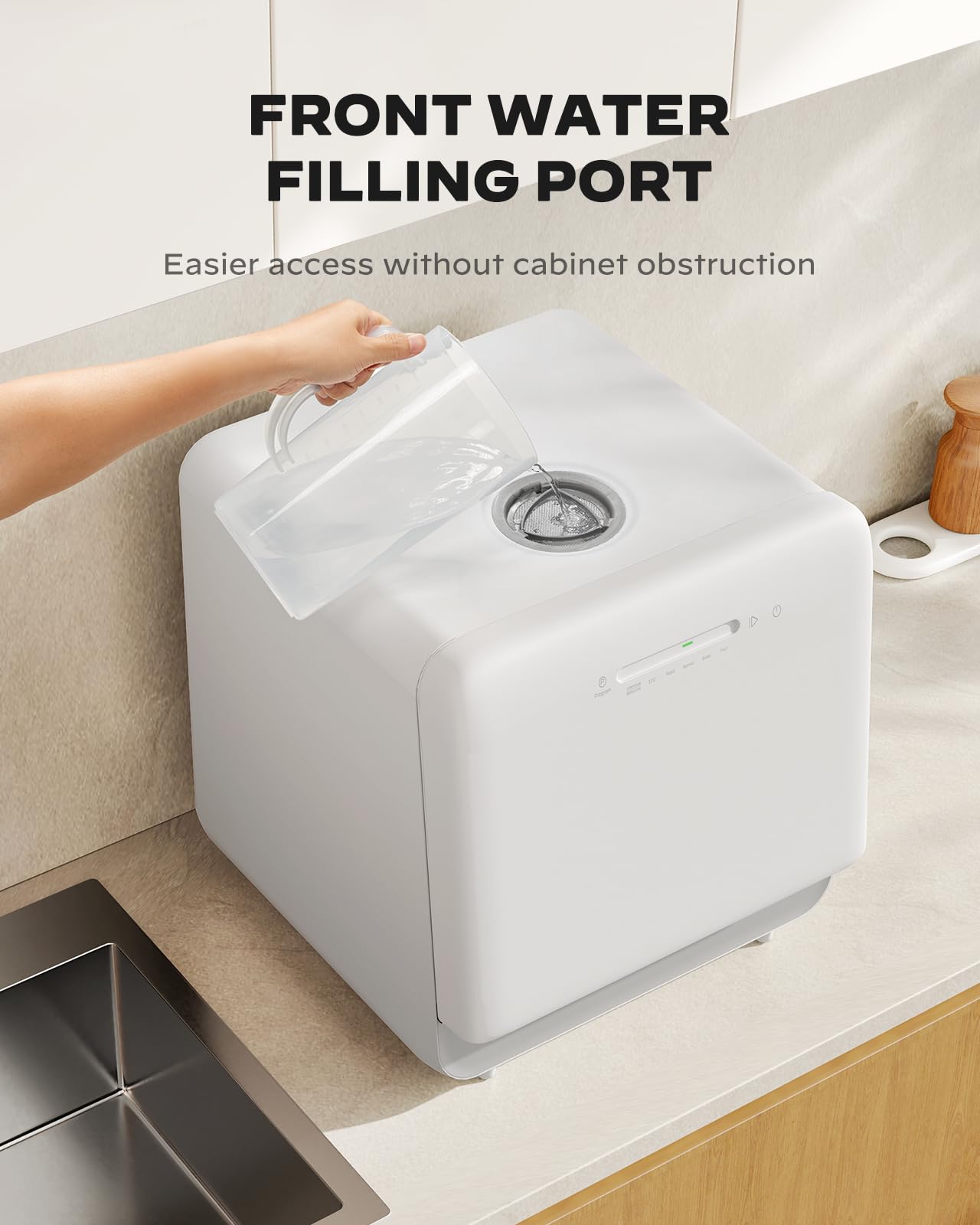 - Advanced Drying & Storage: The small dishwasher features an efficient PTC hot drying system combined with powerful air circulation to ensure dishes completely dry without developing odors. This design avoids moisture buildup and water spots while allowing convenient dish storage right inside the unit.