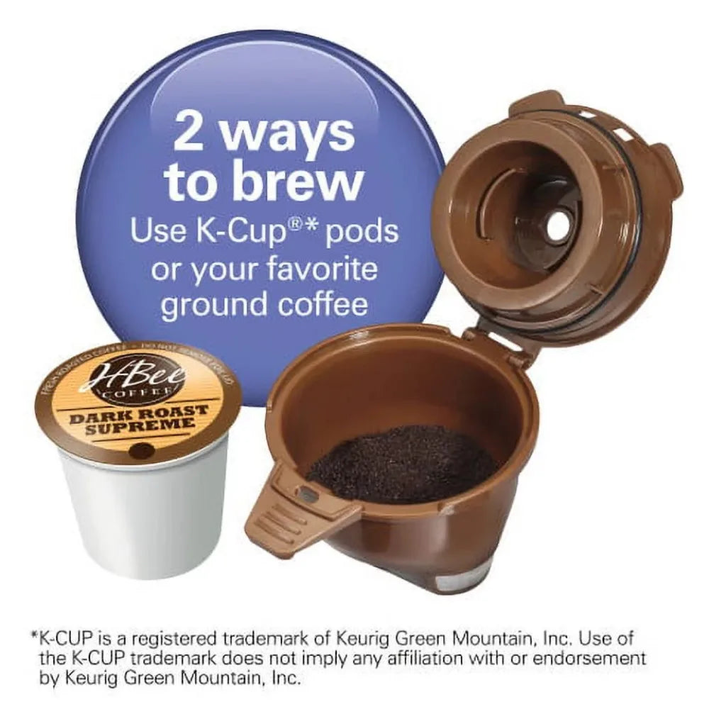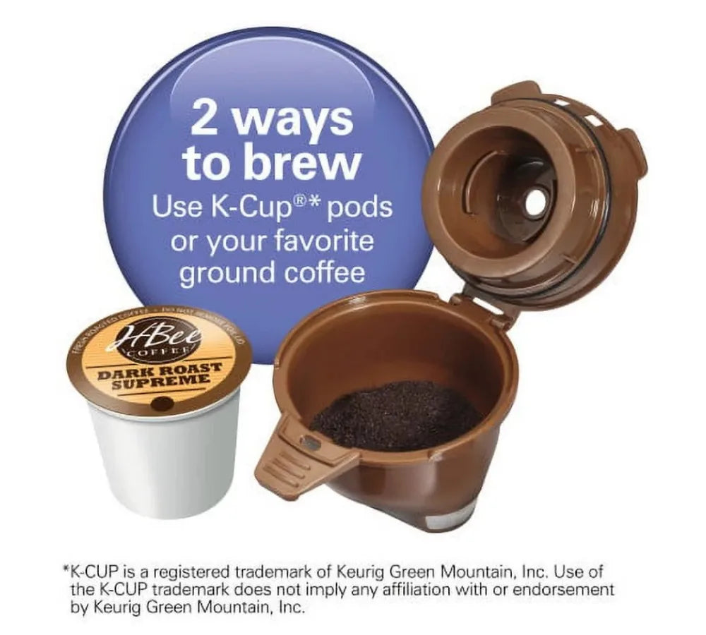 - 2 WAYS TO BREW. Whether you're a steadfast pod user or prefer coffee grounds, you can brew with either. Make up to 10 oz. of coffee with a K-Cup®* pod, or up to 14 oz. of coffee with coffee grounds. Pod holder and single-serve brew basket included.