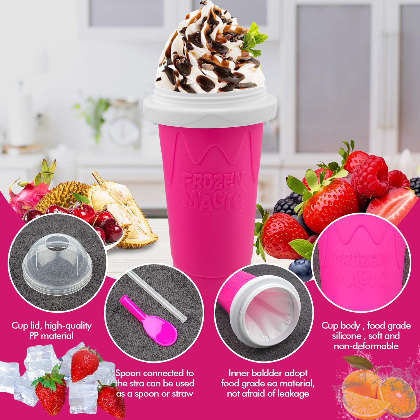 Slushie Maker Cup - DIY Magic Slushy Maker Squeeze Cup, Portable Smoothie Squeeze Cup for Juices, Milk and Ice Cream Make, Double Layer Squeeze Slushy Maker Cup, Birthday Gifts for Friends&Family Pink