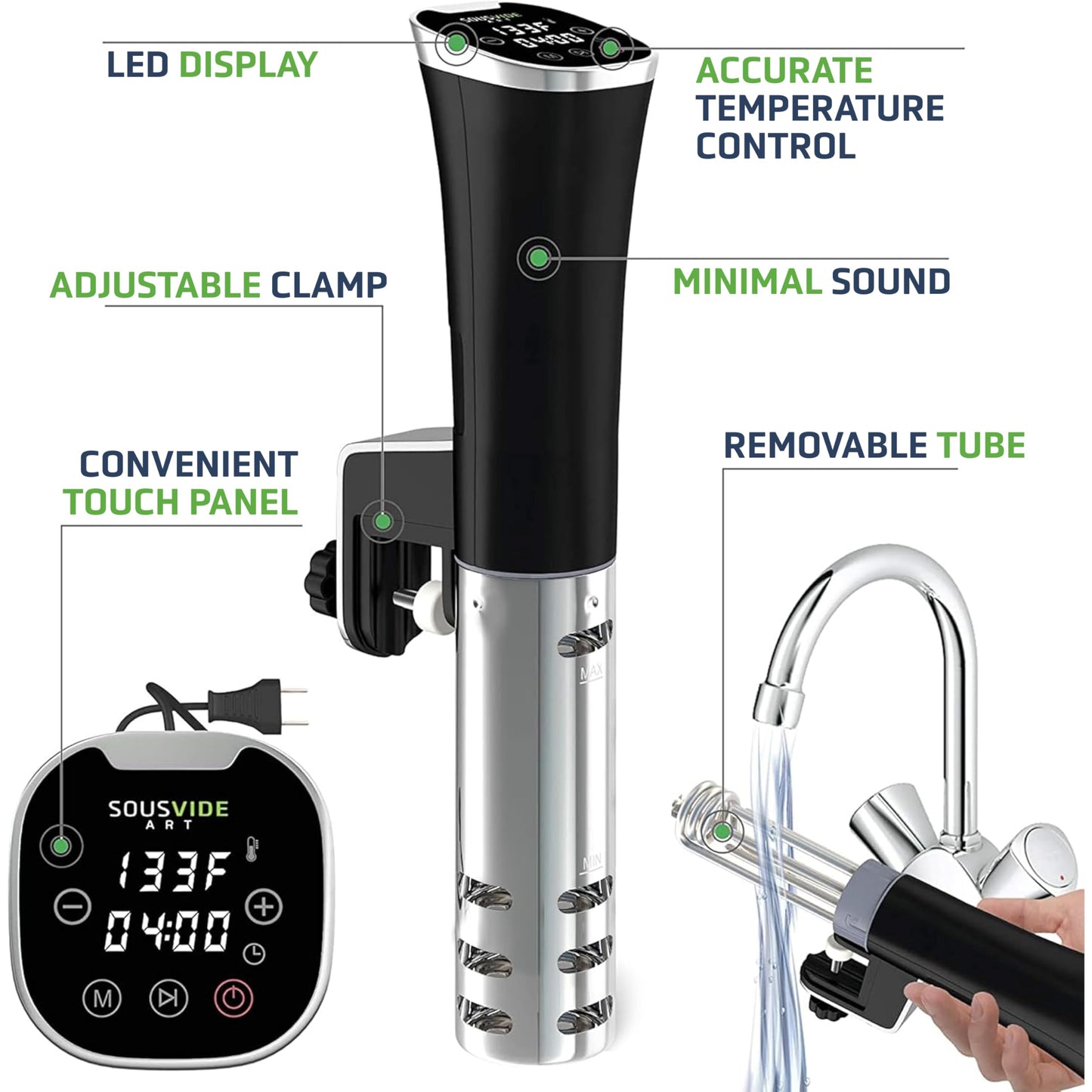 SOUSVIDE ART Sous Vide Cooker Kit - 1000W Immersion Circulator - 15 Vacuum Bags, Pump, Digital Timer and Temperature Control; Complete Sous Vide Machine Cooking Kit for Home Chefs and Beginners